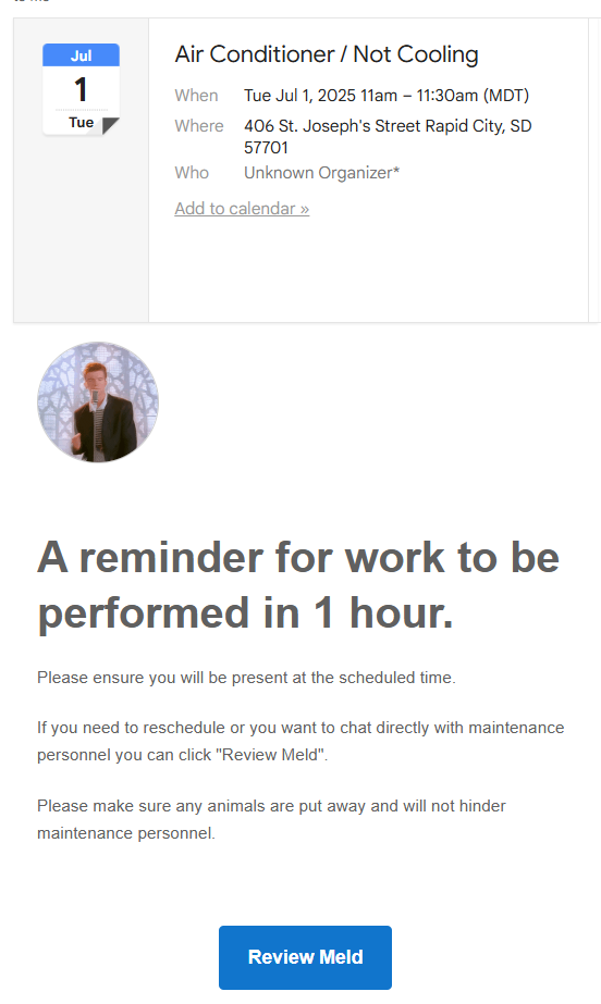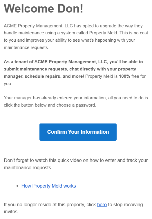 If a Meld is scheduled with “Tenant Presence Not Required”, unregistered residents will not receive any notifications.