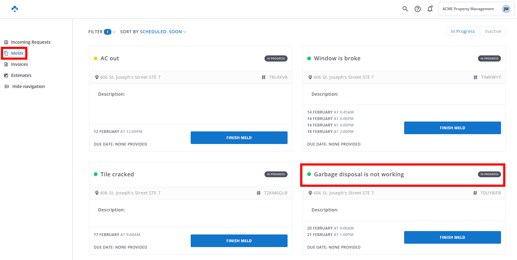 Click to open an "In Progress" Meld.