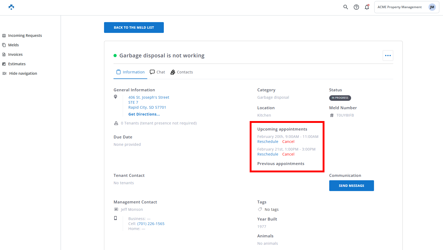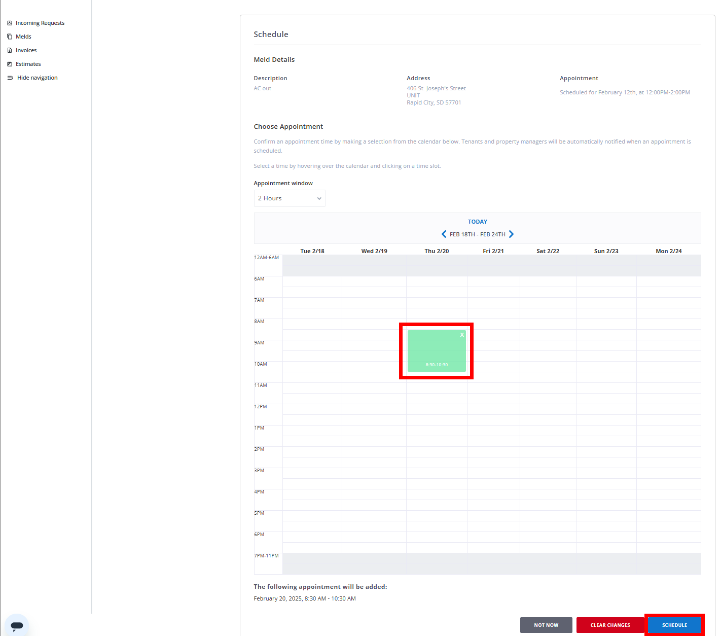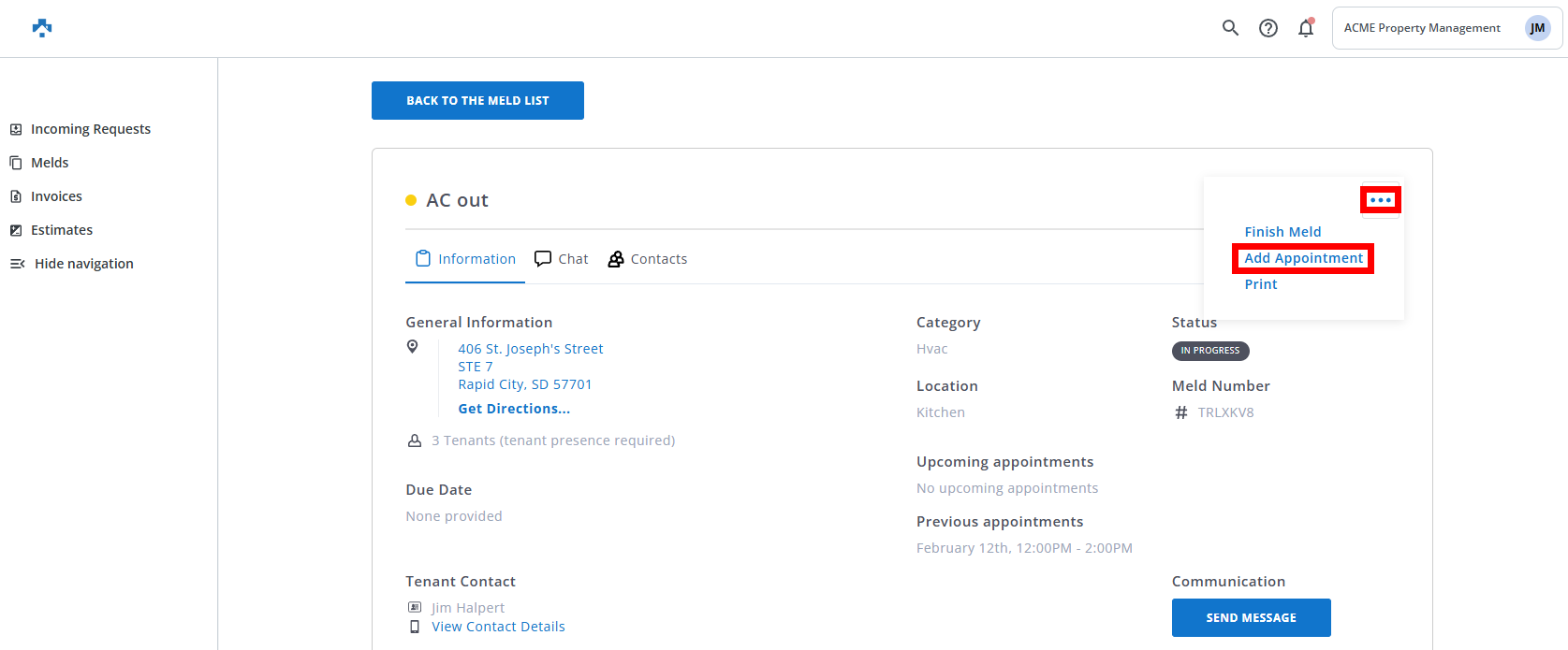 Multi-Appointment Melds allow you to accept or set up multiple appointments within a single "In Progress" meld. Whether you're working on a multi-day project or need a follow-up visit, this feature ensures you can schedule additional appointments without overwriting the original schedule.