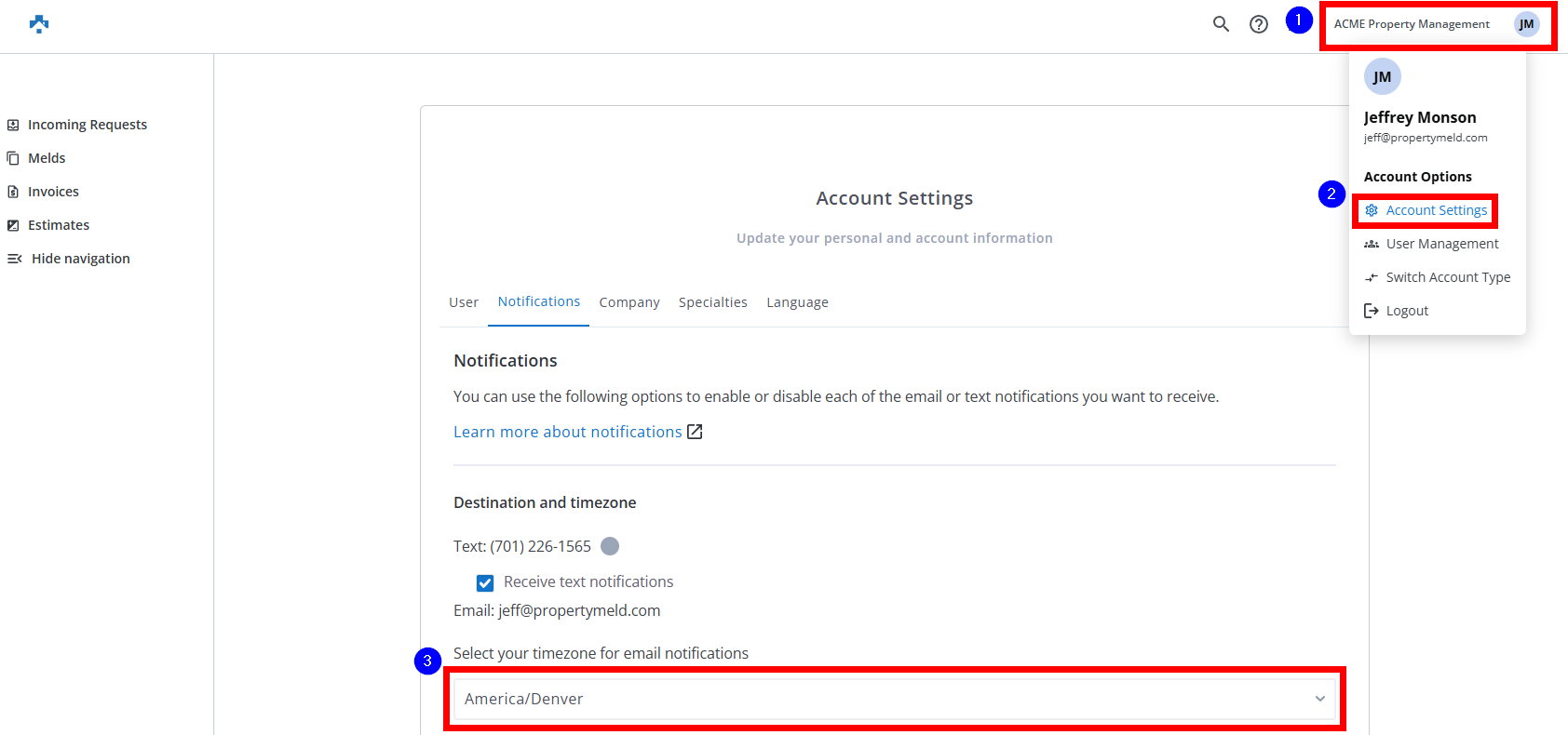 IMPORTANT: After completing your registration, be sure to set your time zone correctly by navigating to the area shown in the screenshot below.