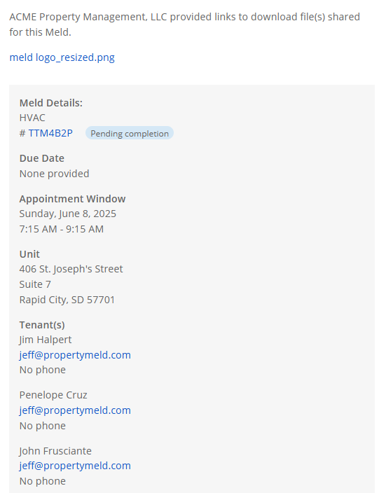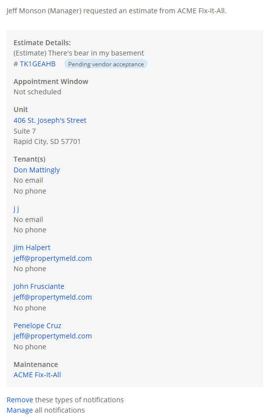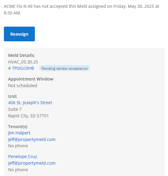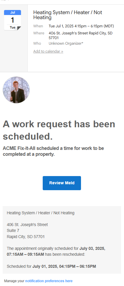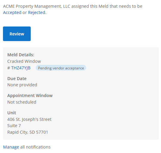 | Notification Type | Vendor Email | Vendor Text | Email Notification Example |