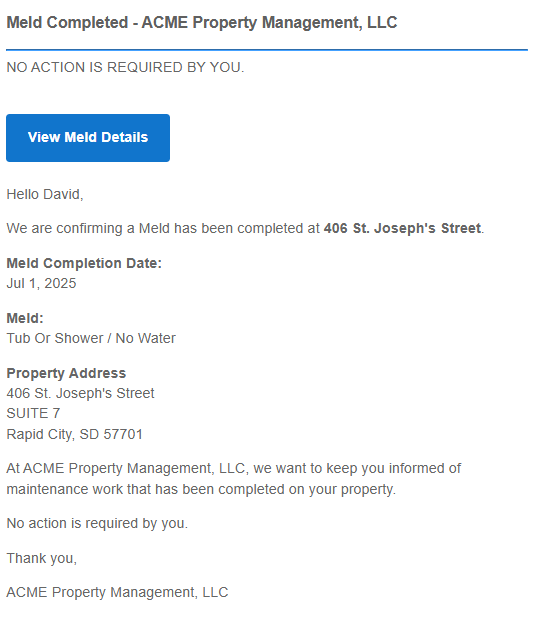 As a property owner using Property Meld, staying informed about your properties is crucial. The notification system ensures you receive timely updates on key maintenance events and communications. Below is a breakdown of each notification type, how it’s delivered, and what it looks like.