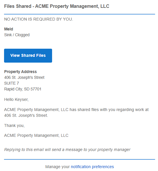 If a technician or property manager chooses to share a photo related to the repair, you’ll be notified by email with the image and context.
