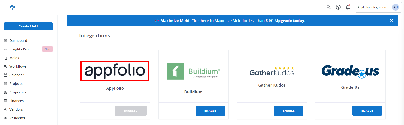 Click appfolio card to open.