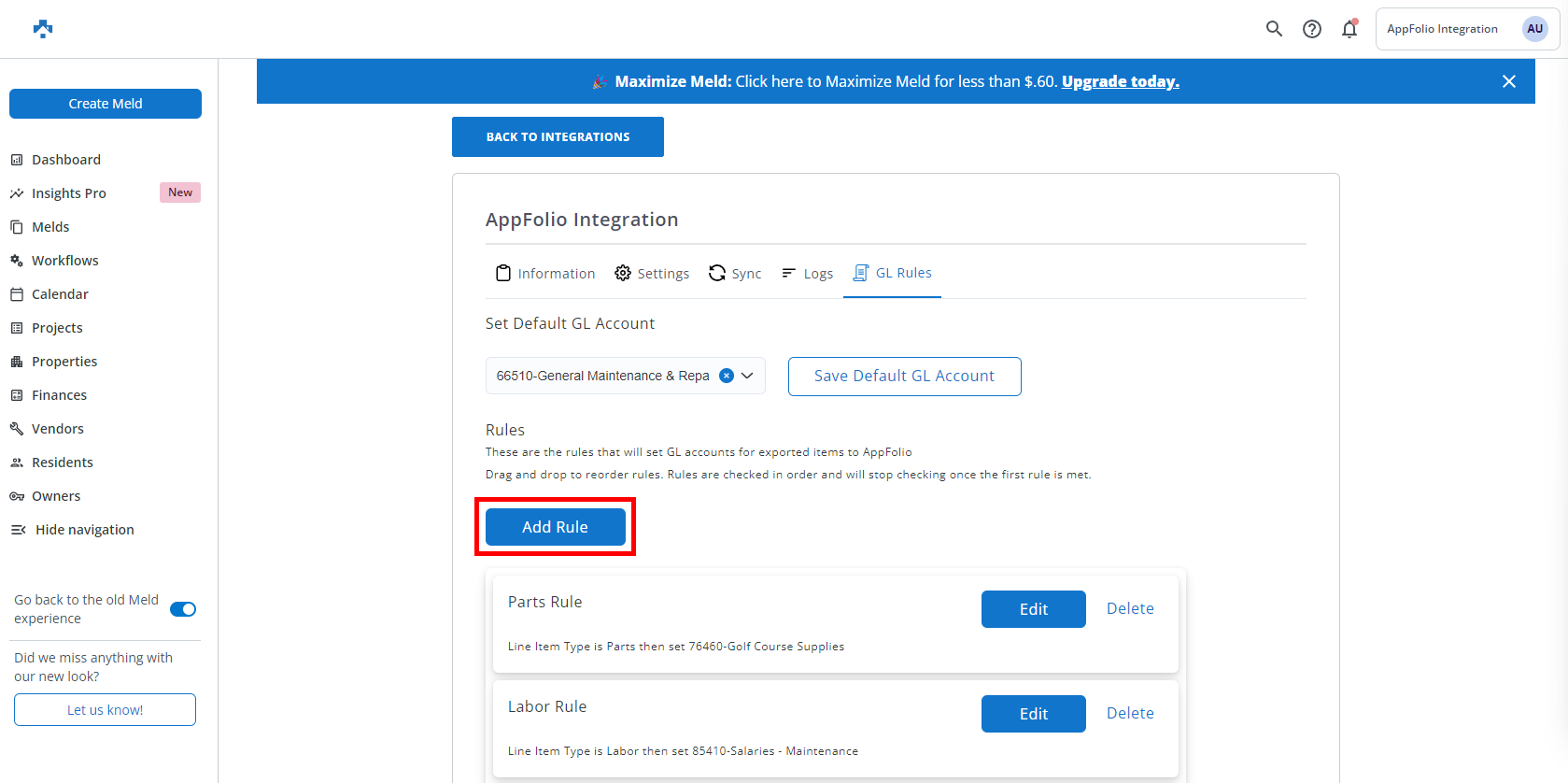 *If the 'Default GL Account' is set under the AppFolio Vendor profile than we will not override this account with our rules.