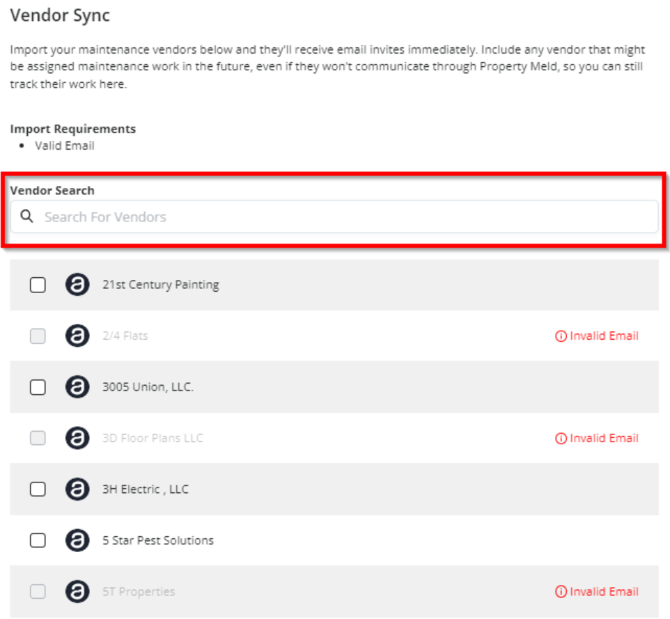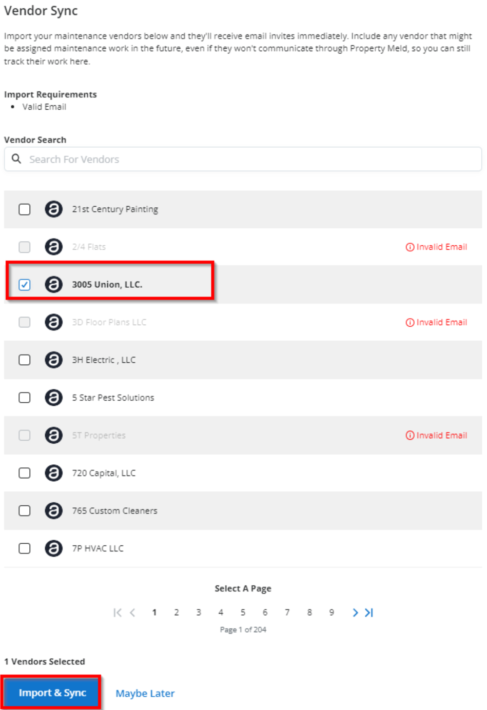 Select vendor and click Invite and Import & Sync.
