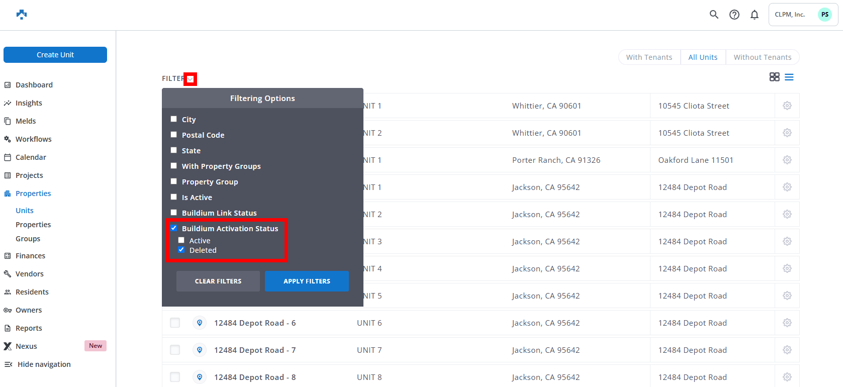 View/Deactivate Deleted or Deactivated Buildium Units