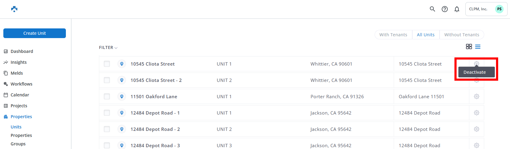 - Deactivating Units/Properties in Property Meld will not deactivate them in Buildium.