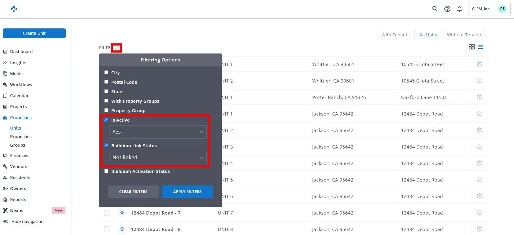 - Units/Properties without a link to their Buildium counterparts