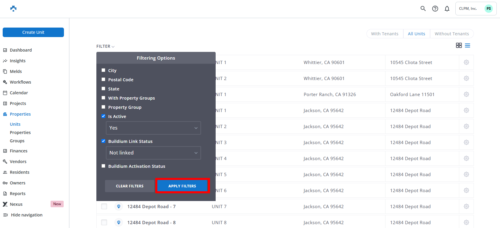 View/Deactivate Units Without a Buildium Link