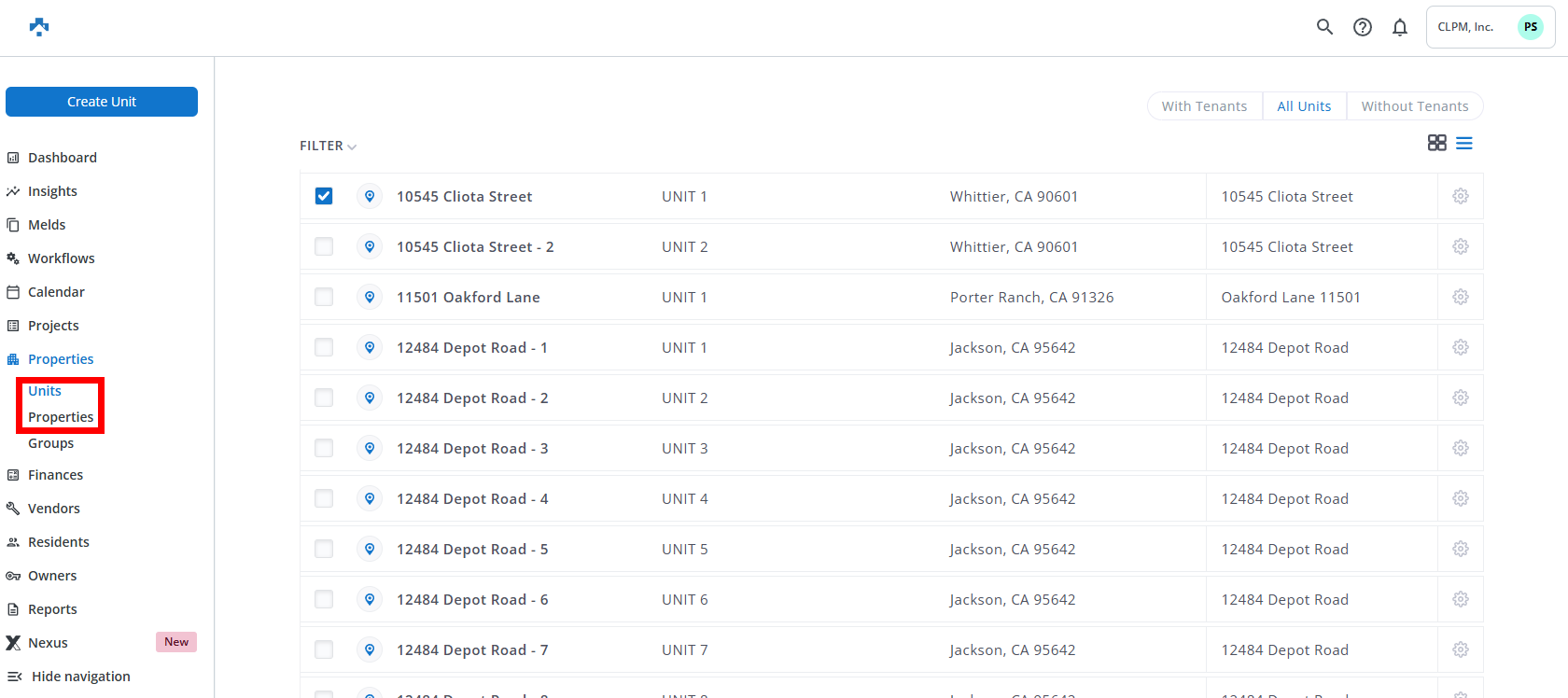 NOTE: You are now viewing a list of all Units that have been deleted in Buildium.
