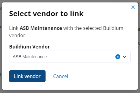Click the matching Buildium Vendor from the dropdown list, then click LINK VENDOR.