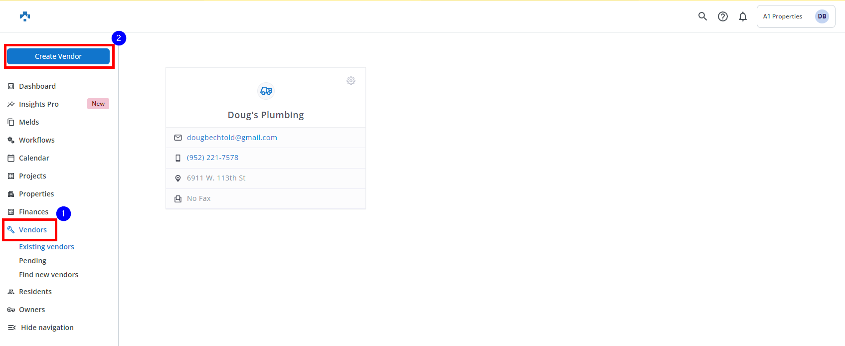 Click Vendors and then click Create Vendor.
