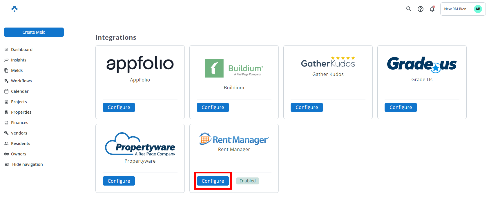 Click Configure on the Rent Manager card.