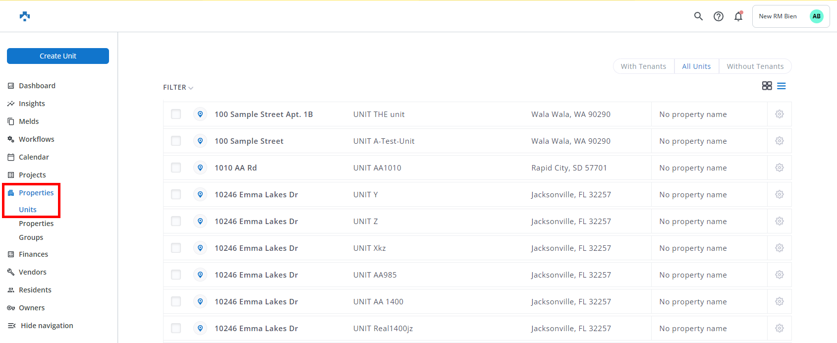 Property Meld Units need to be manually deactivated in Property Meld when no longer "linked" or synchronized with a Rent Manager Unit. The following steps take you through the process of viewing and deactivating these units in Property Meld.
