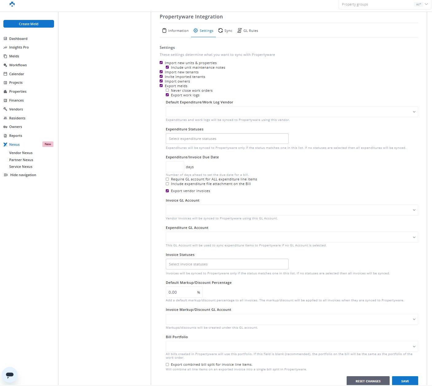 - When checked, any Invoices from Property Meld will sync to Propertyware Expenses.