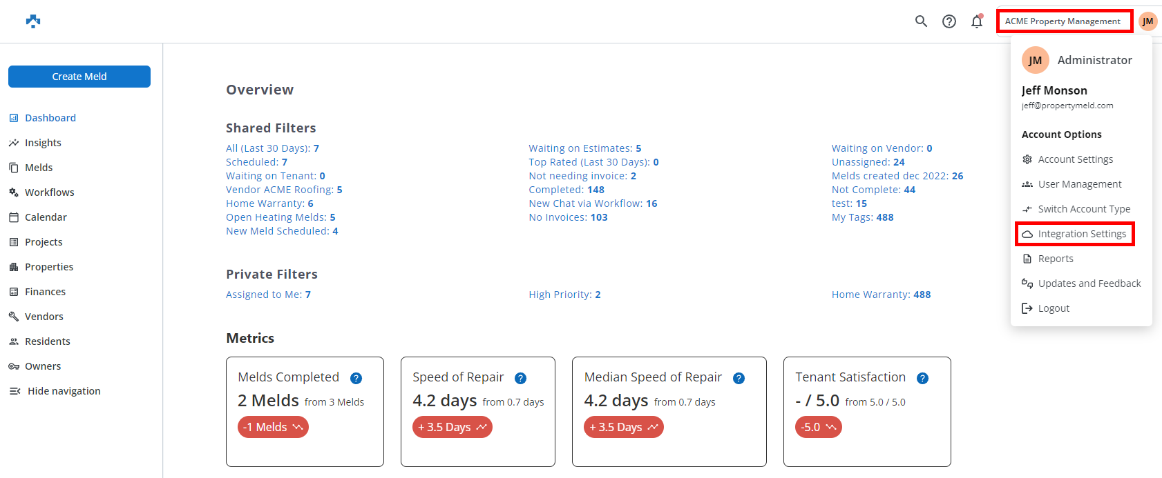 Click your Company in in upper right corner. then click Integration Settings.