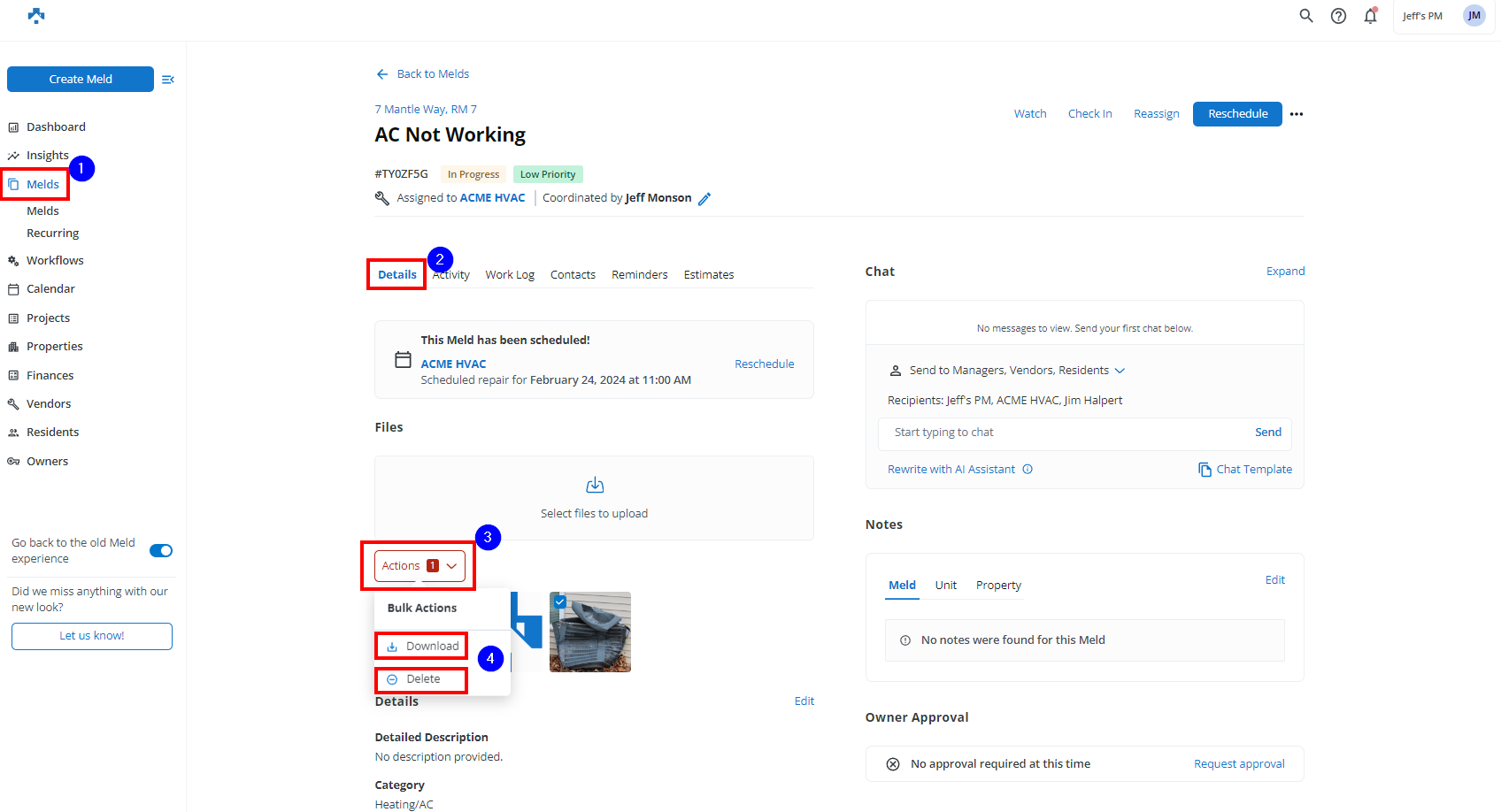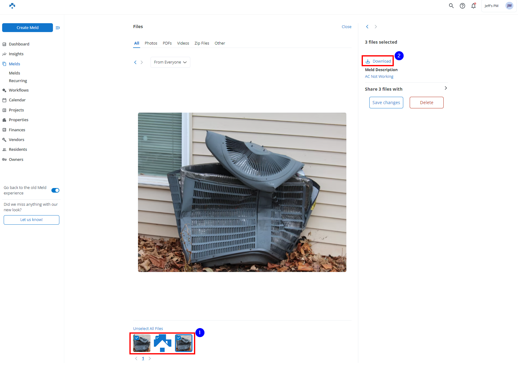 - If a Vendor uploaded a file, and then the Meld is either reassigned to a different Vendor or cloned, the Vendor's files will become the Property Manager's files.