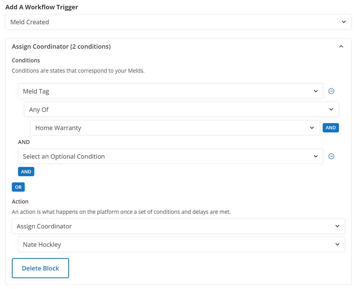 Meld Tags can be used as a condition in workflows to limit or execute any available action when a trigger event occurs. Tags can be added manually to a Meld or automated through another workflow. Tags are used when a specific process, procedure, or filter needs to be used. These Tag based conditions will help automate and execute those processes and procedures. The Meld Tag condition will look for the presence or lack of a tag based on the sub-condition selected. Examples of the sub-conditions and uses are listed below.