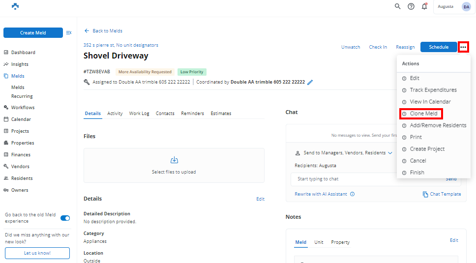 NOTE: Chat history will not be transferred to the cloned Meld, but any photos or files from the original Meld will remain attached to the cloned Meld.