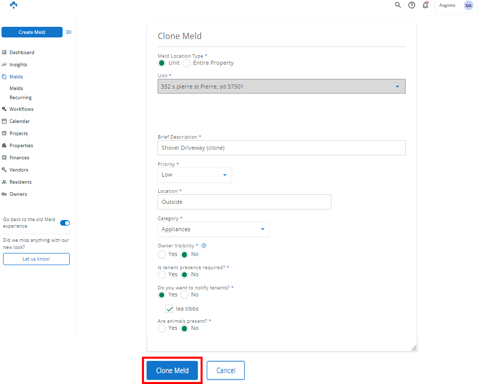 Property Meld allows you to "clone" a Meld. Doing this will automatically populate all of the previous information and connect the two Melds for easy reference.