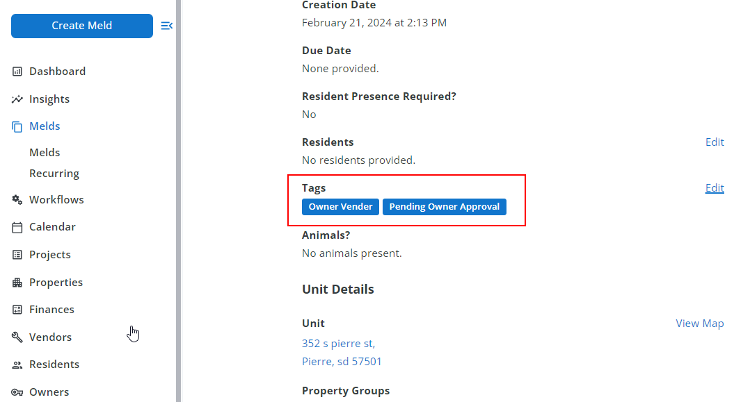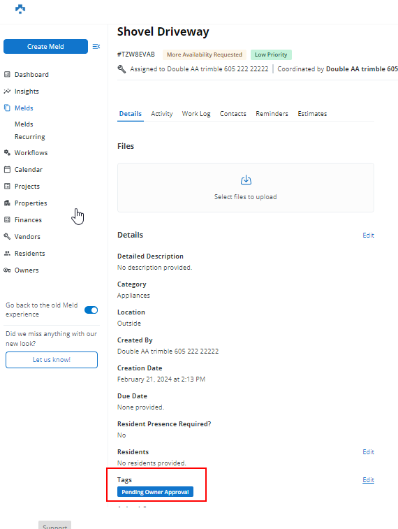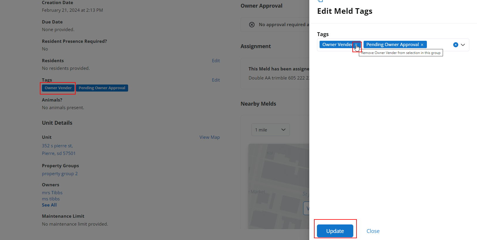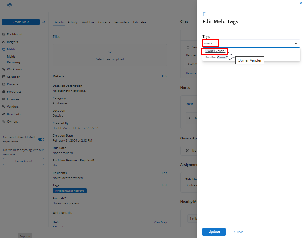 After showing the Edit Tags dialog, remove the Owner Vendor Tag from this Meld by clicking edit and then the x next to the Tag name.