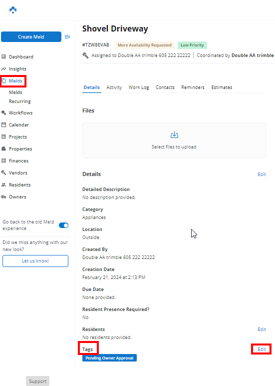 Tags are created the first-time a Tag name is entered on a Meld. Refer to Manage Tags for steps to view existing Tags, rename Tags, or delete Tags. This article will provide the steps to creating and assigning Tags on a Meld. Best Practices and Examples of Tags provides a guide and recommendations for implementing the use of Tags.
