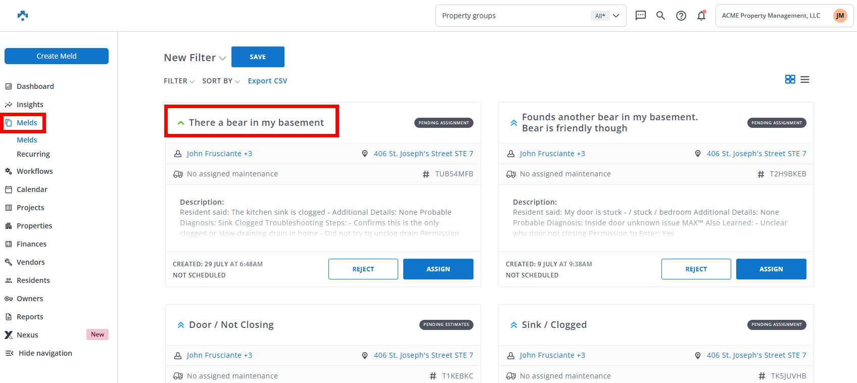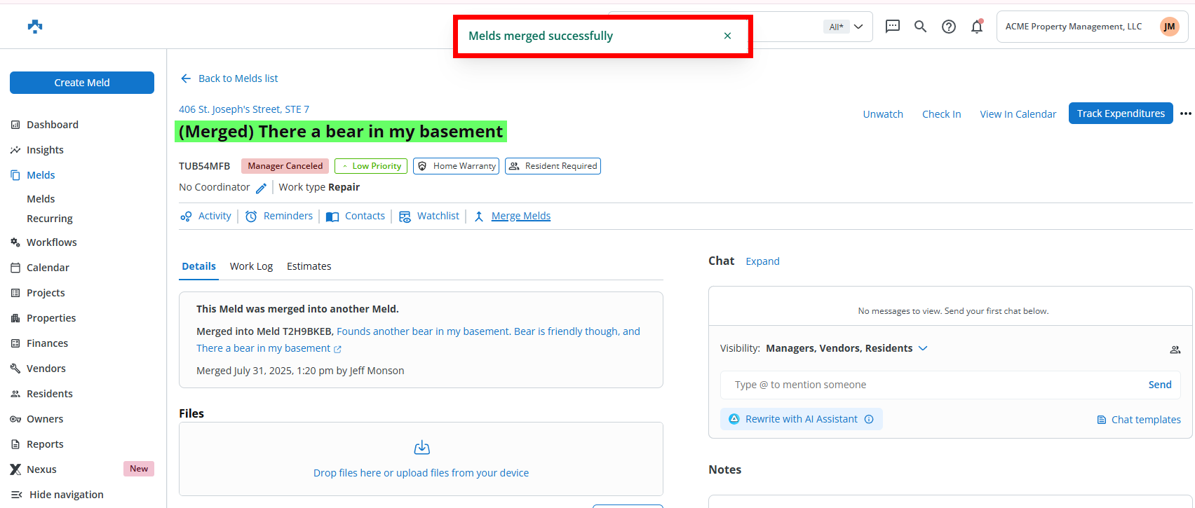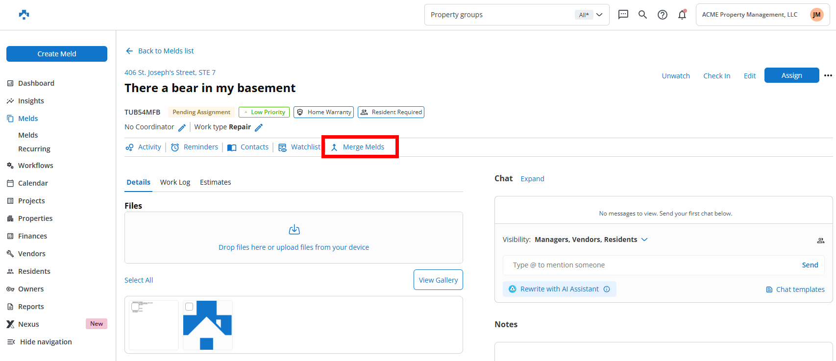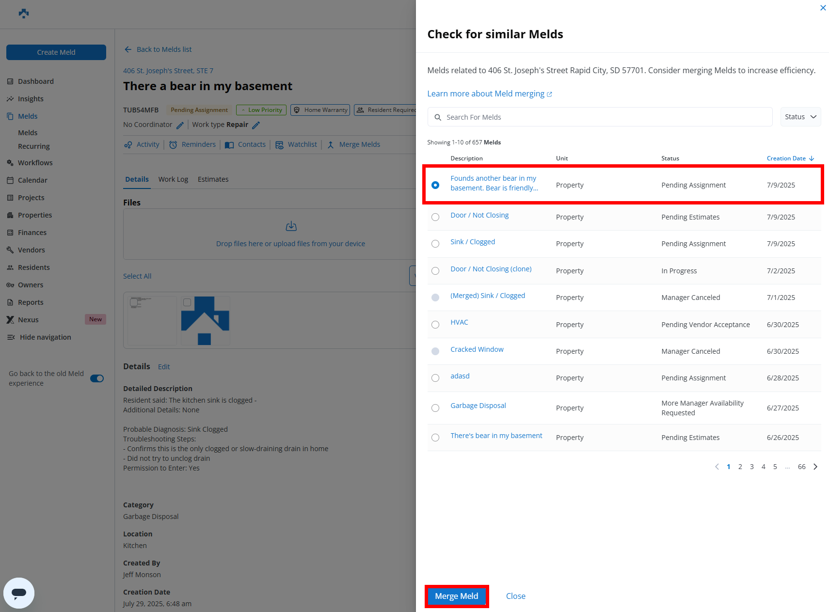 NOTE: If you do not currently have Meld Merging, reach out to your Customer Success Manager at success@propertymeld.com for information on how you can upgrade.