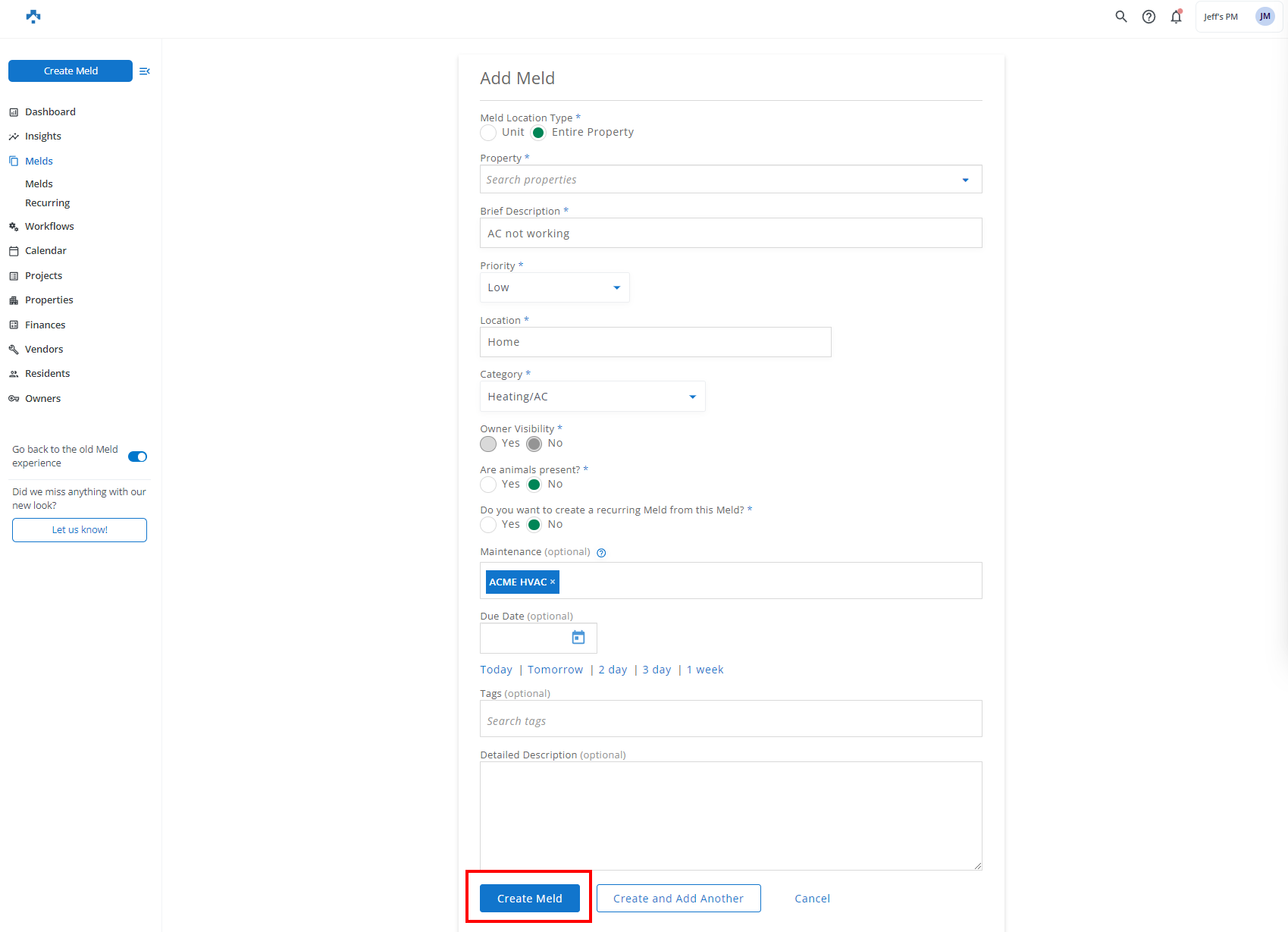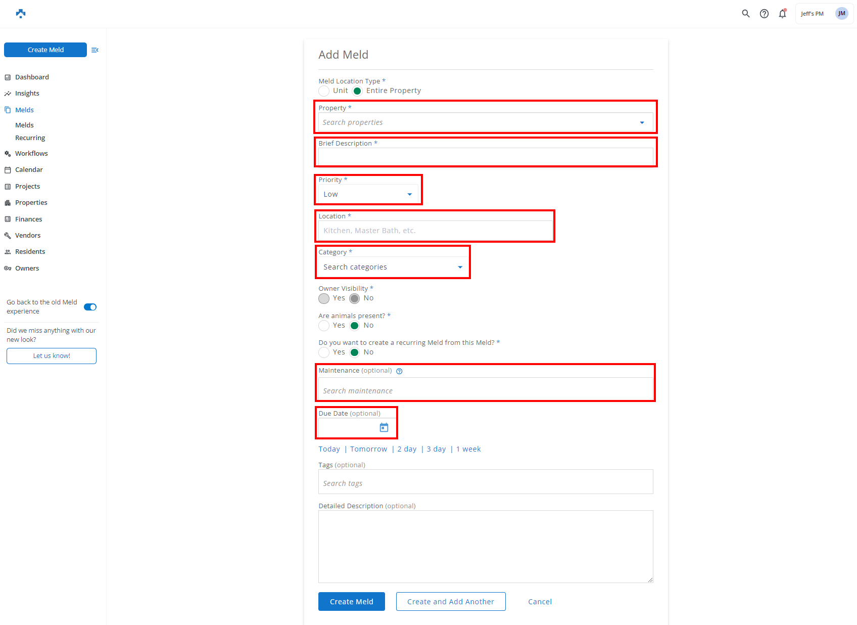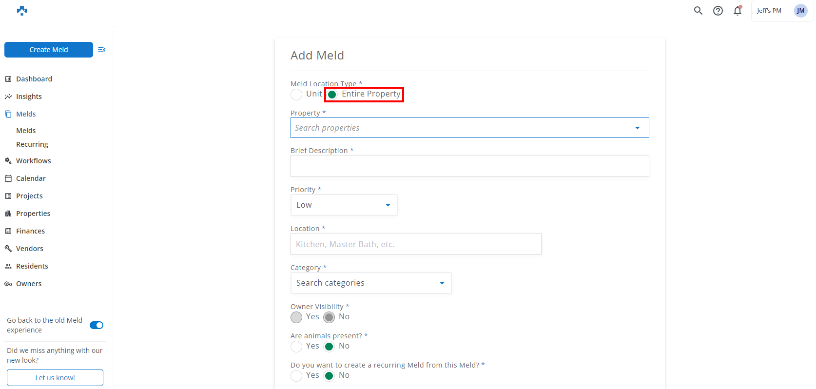 Multi-unit managers can now create Melds for communal spaces, or the property at large. Green water in the pool, burnt out lights in the hallway, or a broken main entry door are all examples of how to utilize property-level Melds at your multi-unit properties.