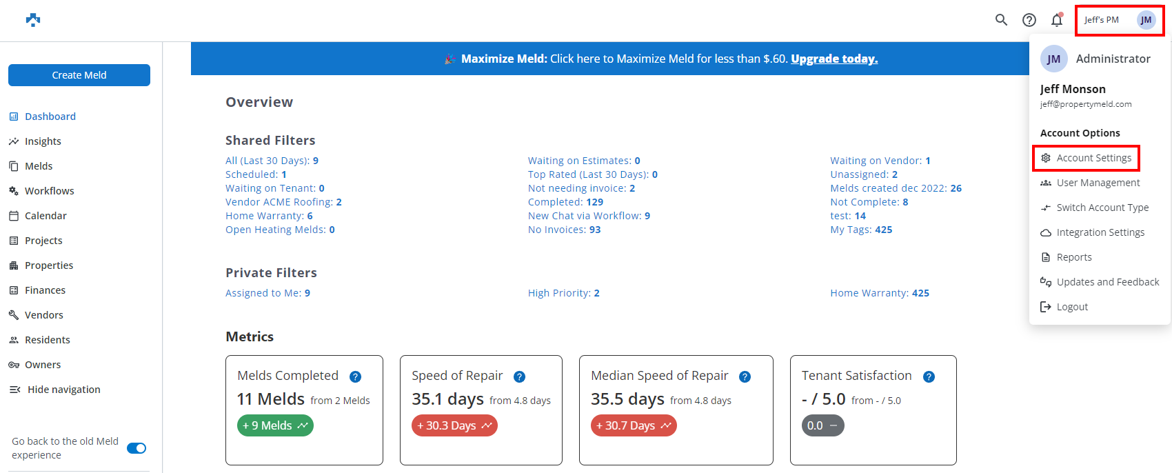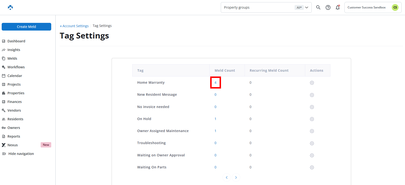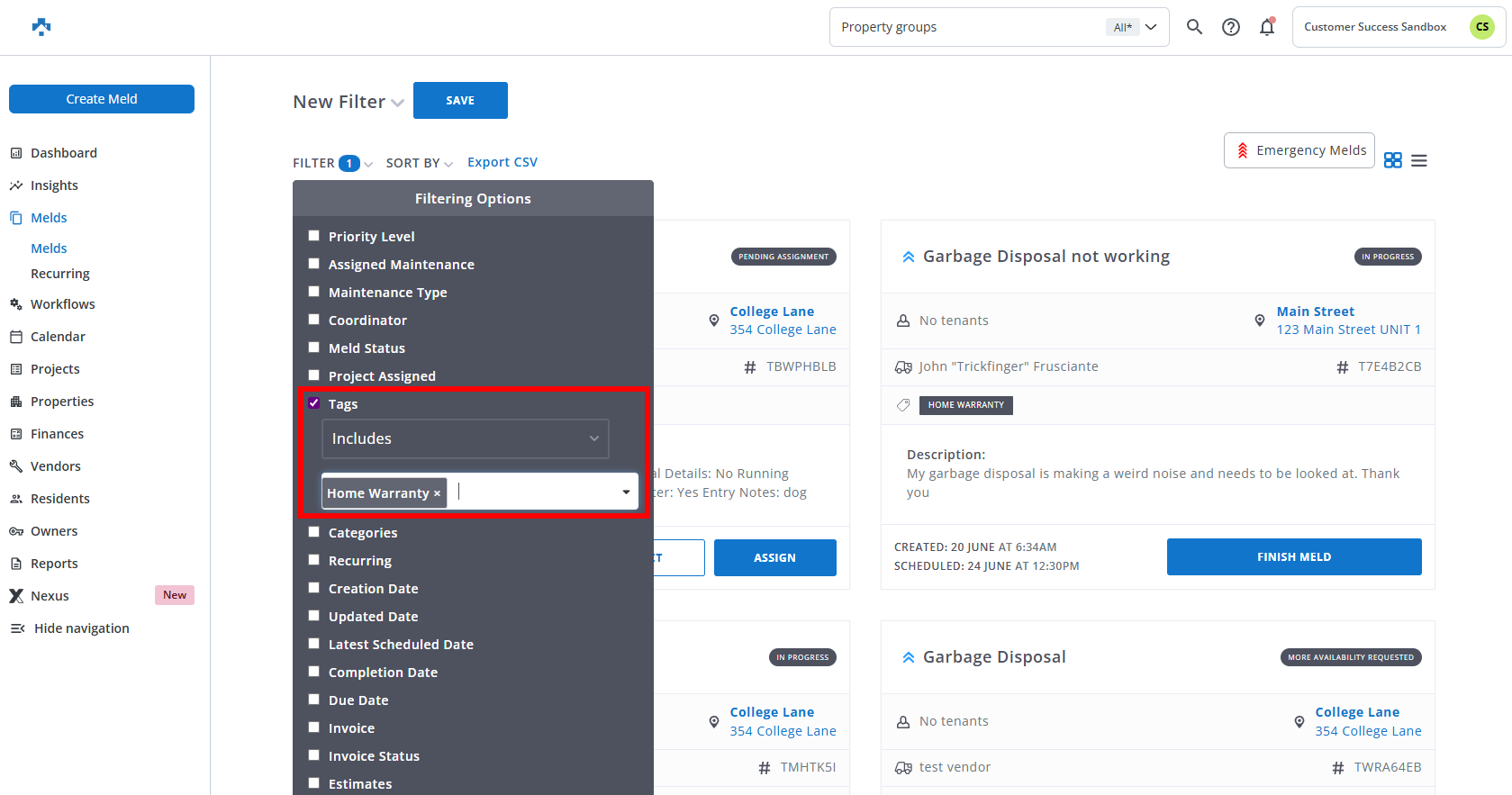 NOTE: At this point, the Filter can be Saved which would be specific to viewing all of the Melds with the Home Warranty Tag assigned.
