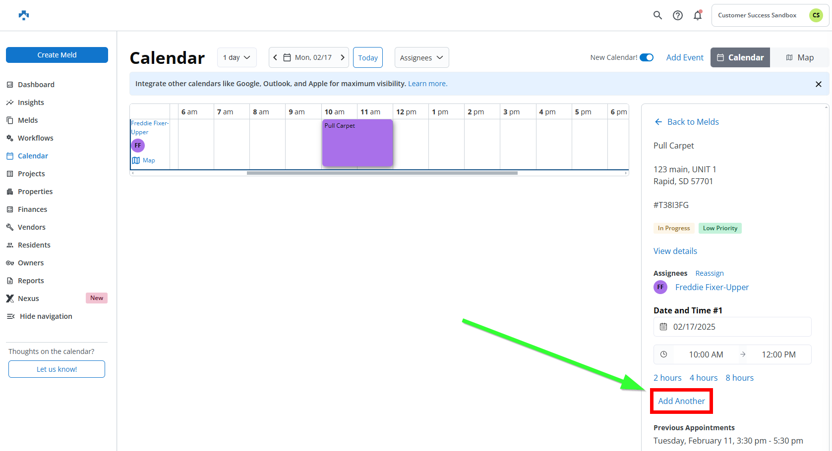NOTE: You can only add additional appointments to an "In Progress" meld that has already been scheduled and not closed.