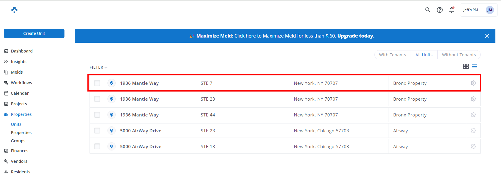 Click Properties, click the Unit you would like to add/edit Maintenance Notes on.