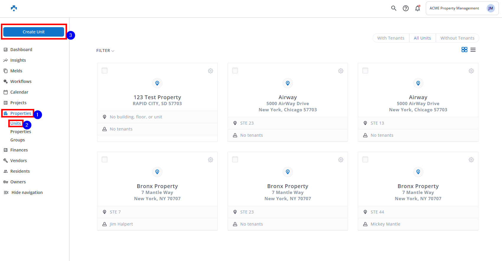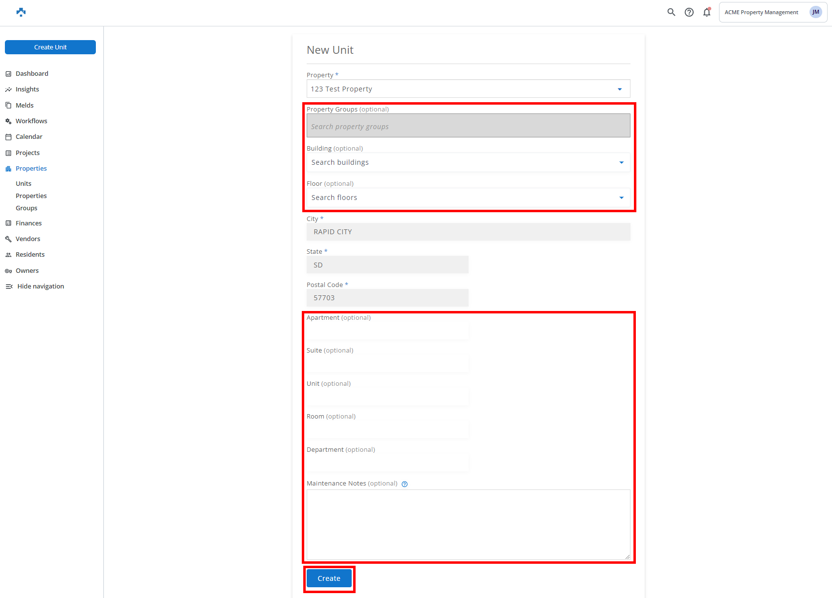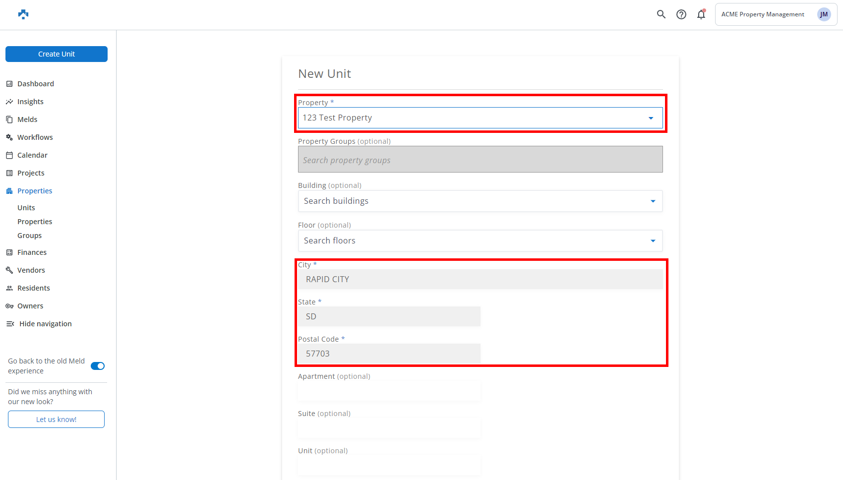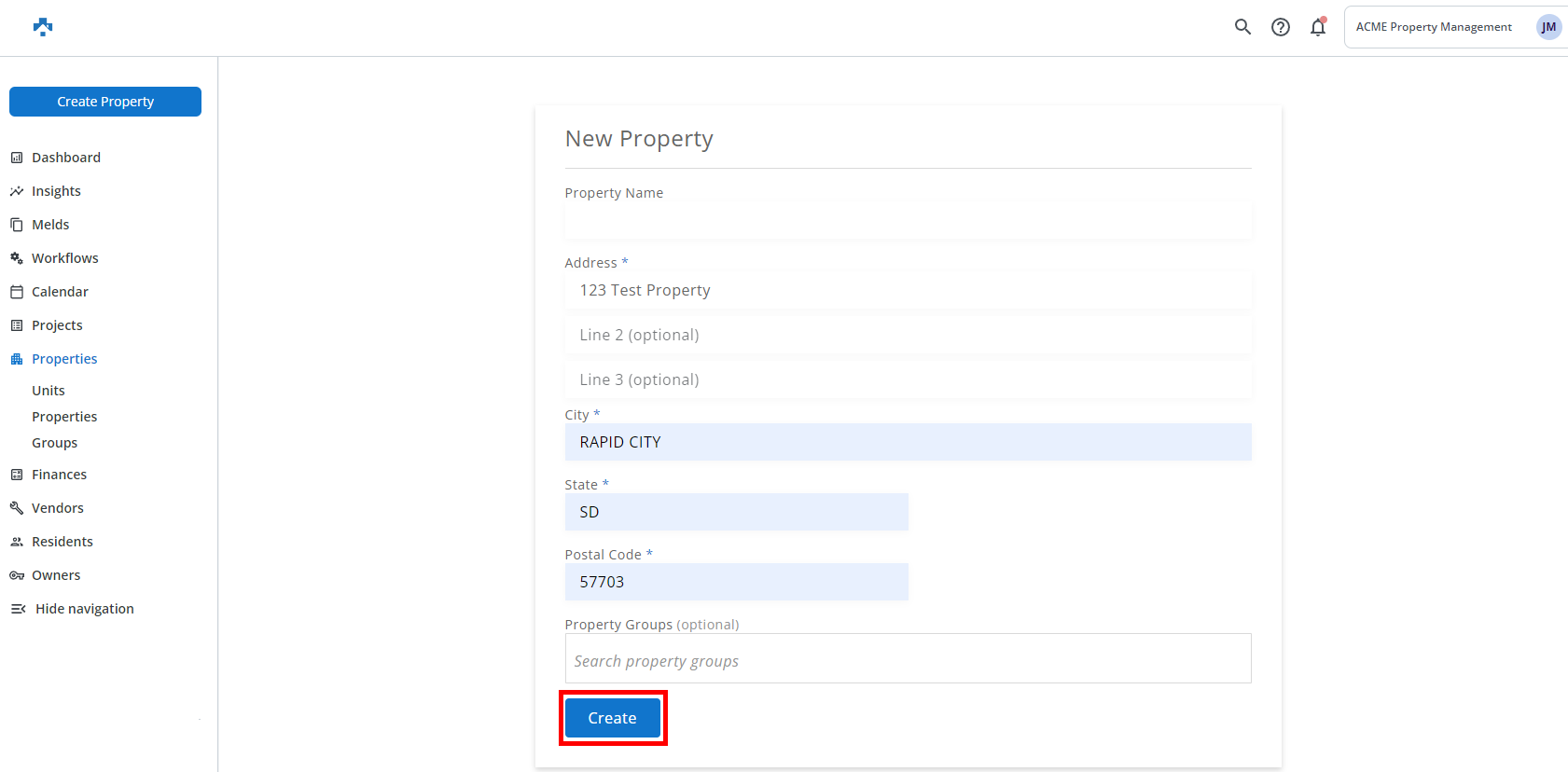 NOTE: If you have an active integration with your accounting software, you should let your properties sync over rather than manually adding in Meld.