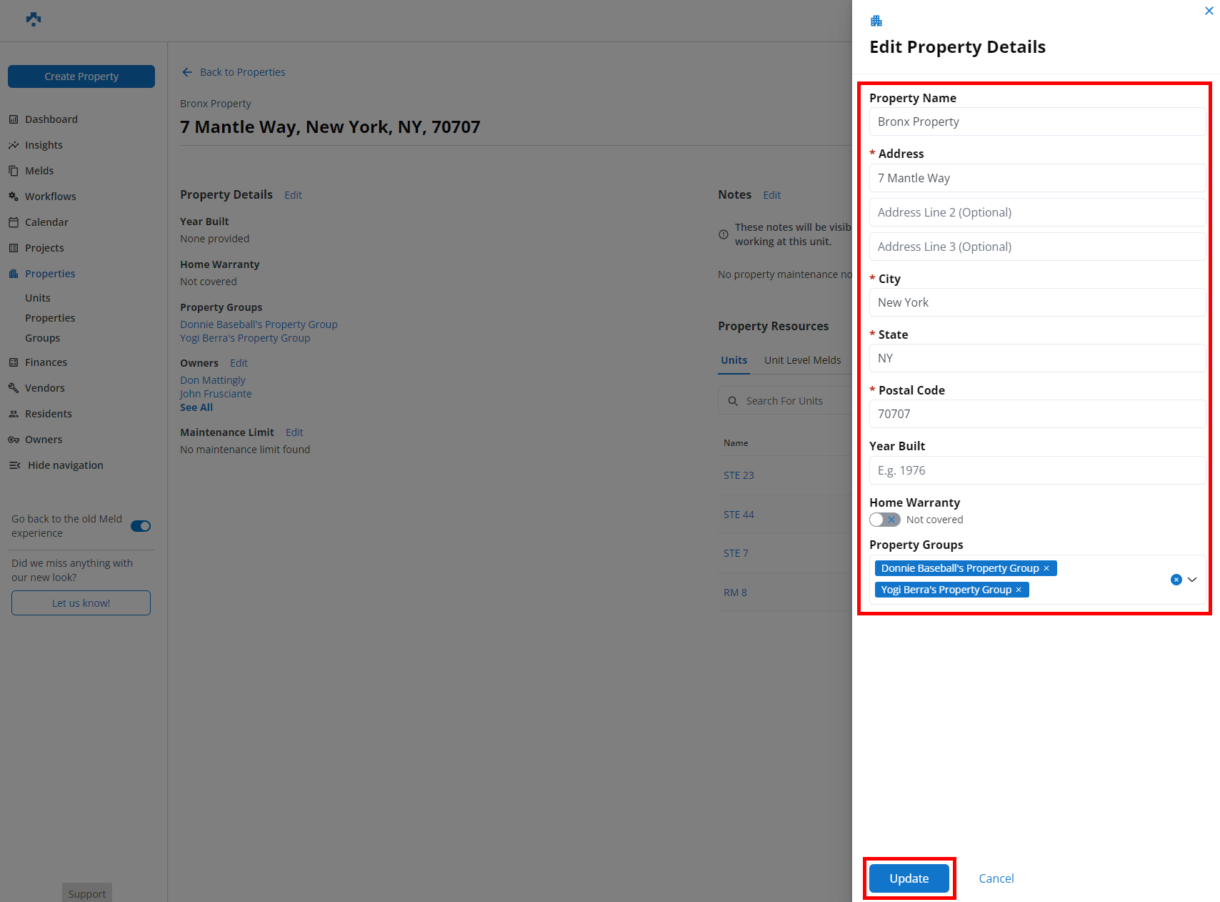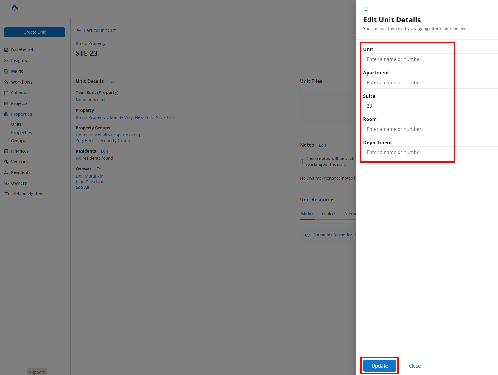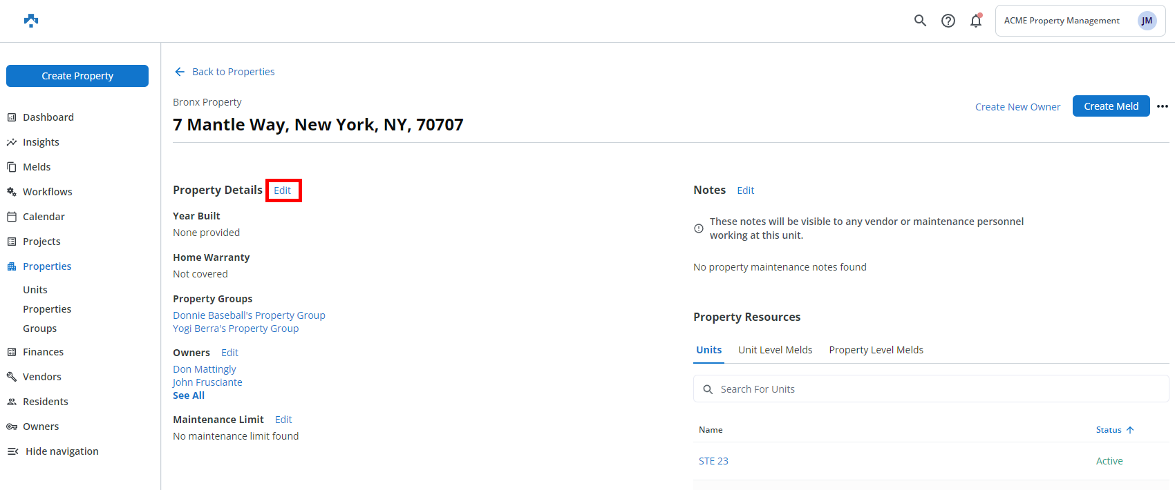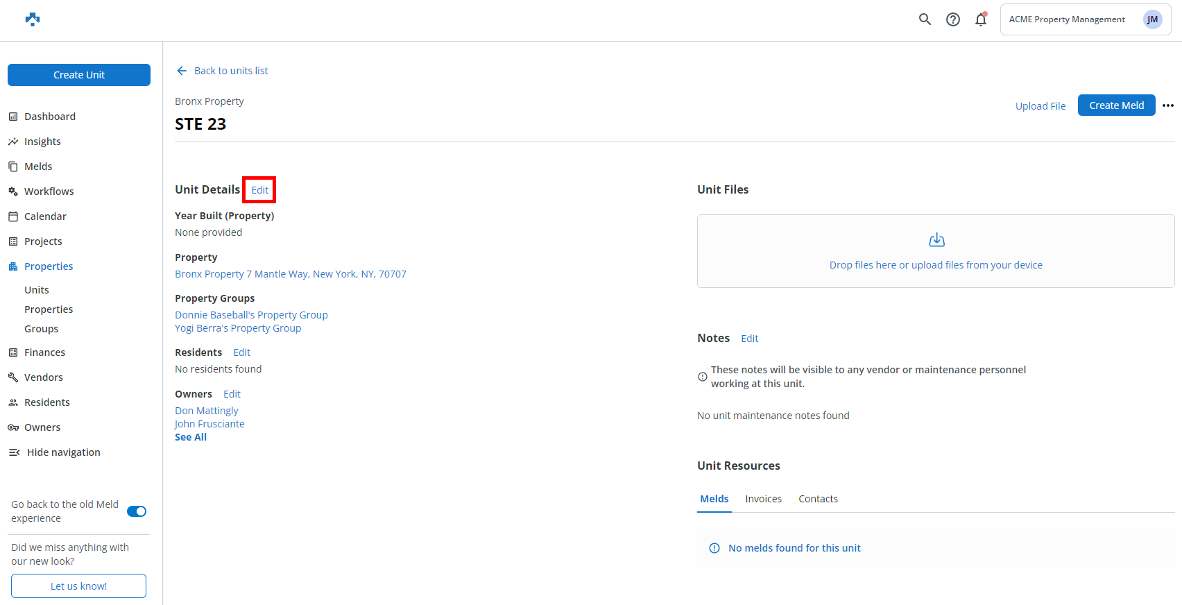 Click Properties, click the Units tab, then click the Unit you would like to edit.