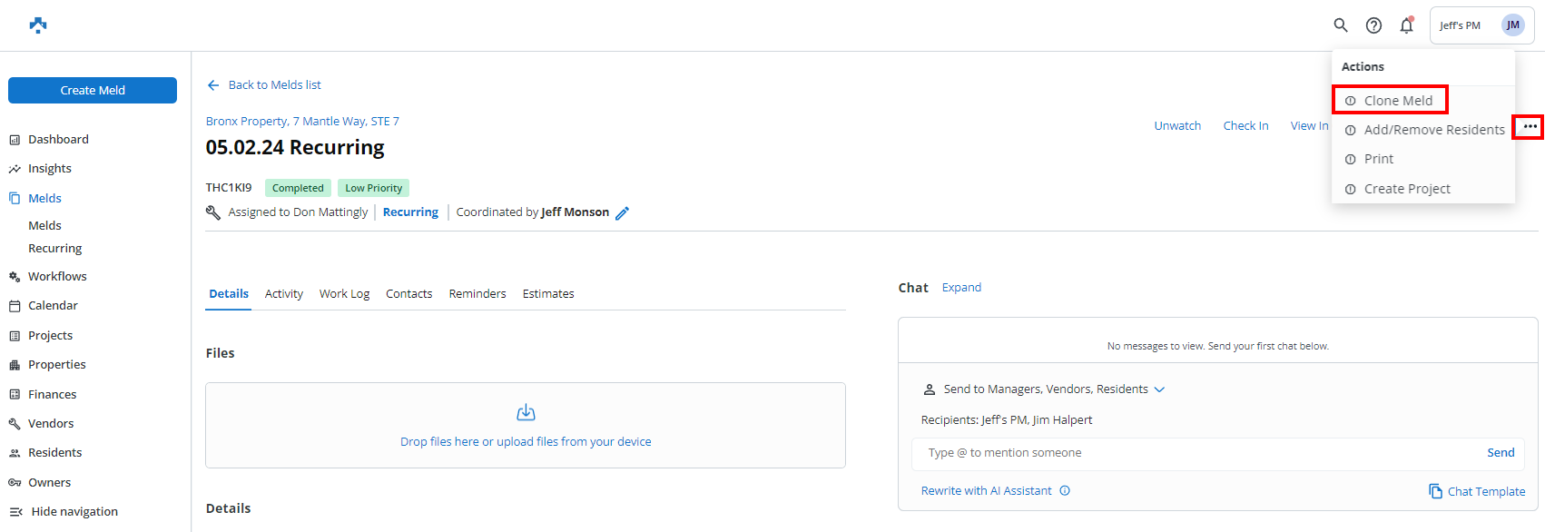 - Internal Maintenance Technician Assigned Cloned Meld to Vendor: