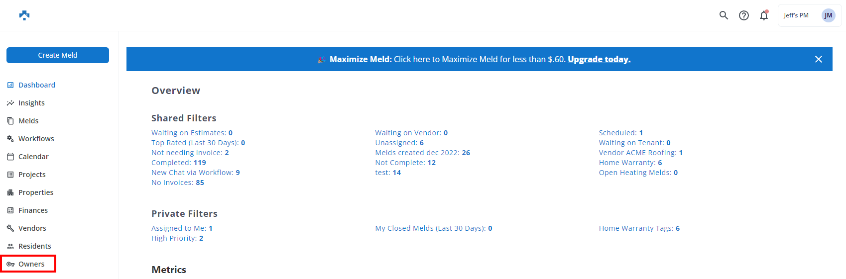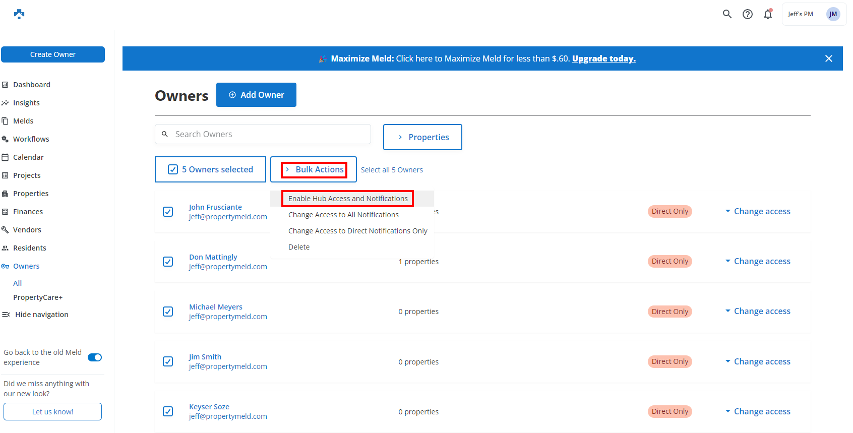 NOTE: Communication with an owner is always available via Meld chat and does not require owner notifications to be enabled.