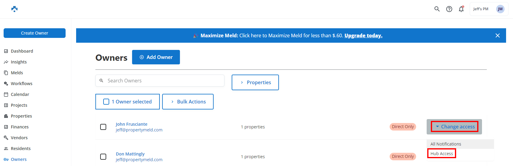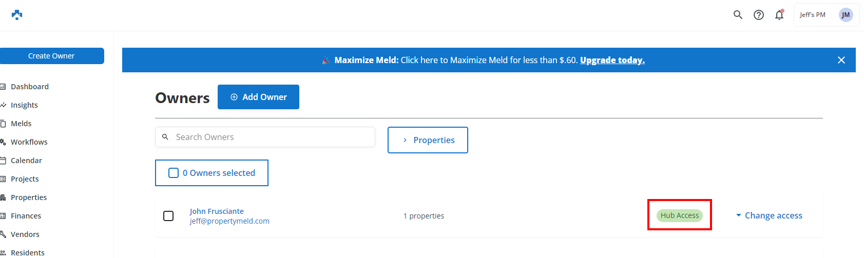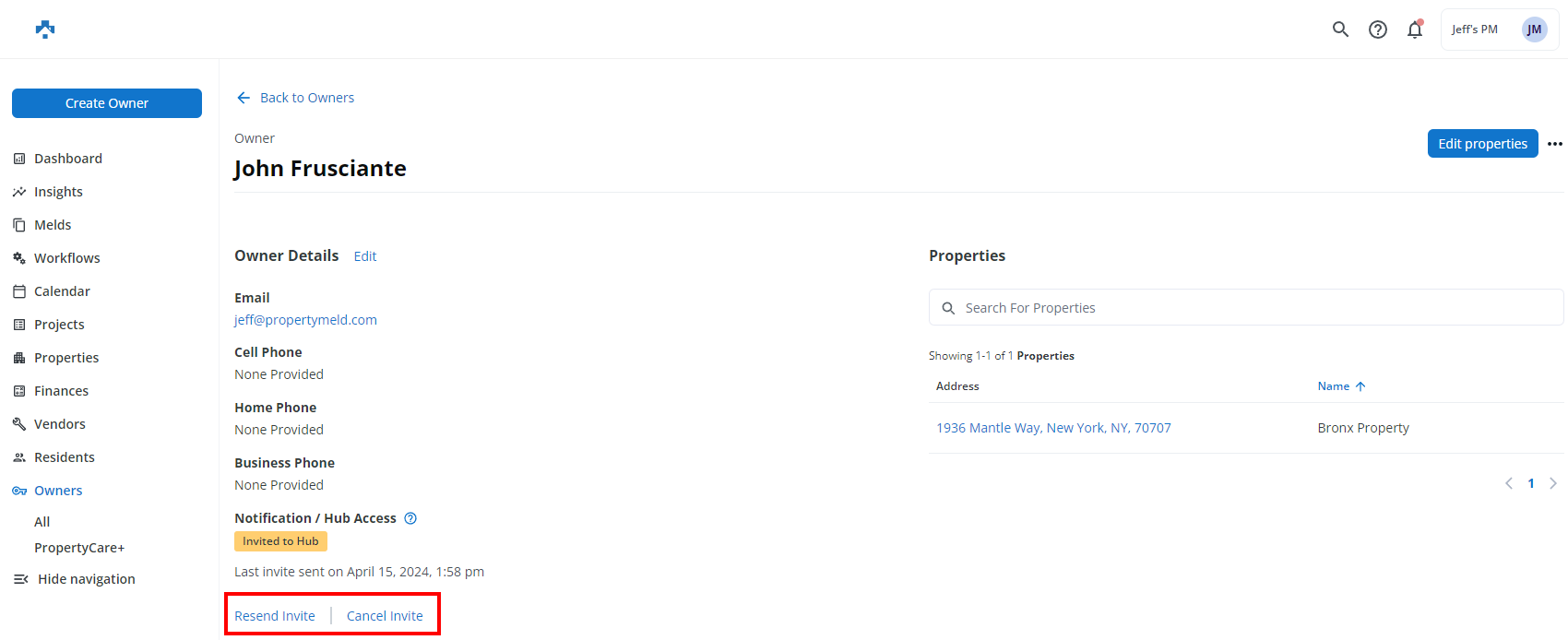 Once the owner’s access level has been changed to Owner Hub an invite will automatically be sent out. If this has been sent in error or you wish to resend it, follow the steps below.