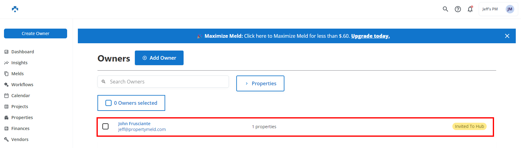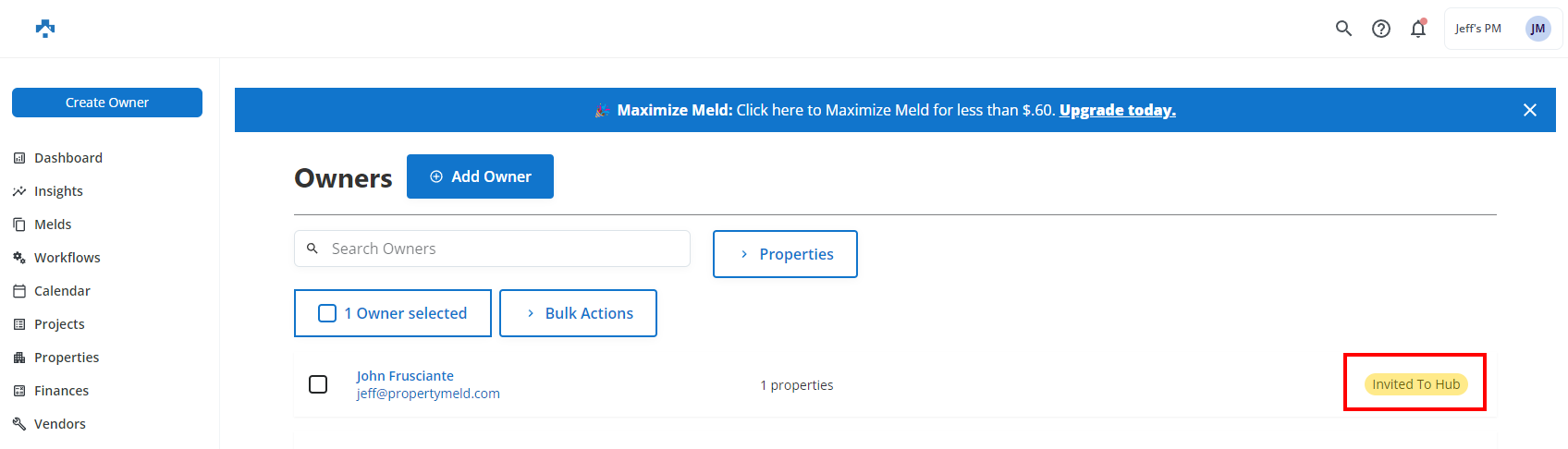 NOTE: For instructions on how to accept the invite from the owner's perspective Accepting Invite and Registering for Owner Hub - Owner.