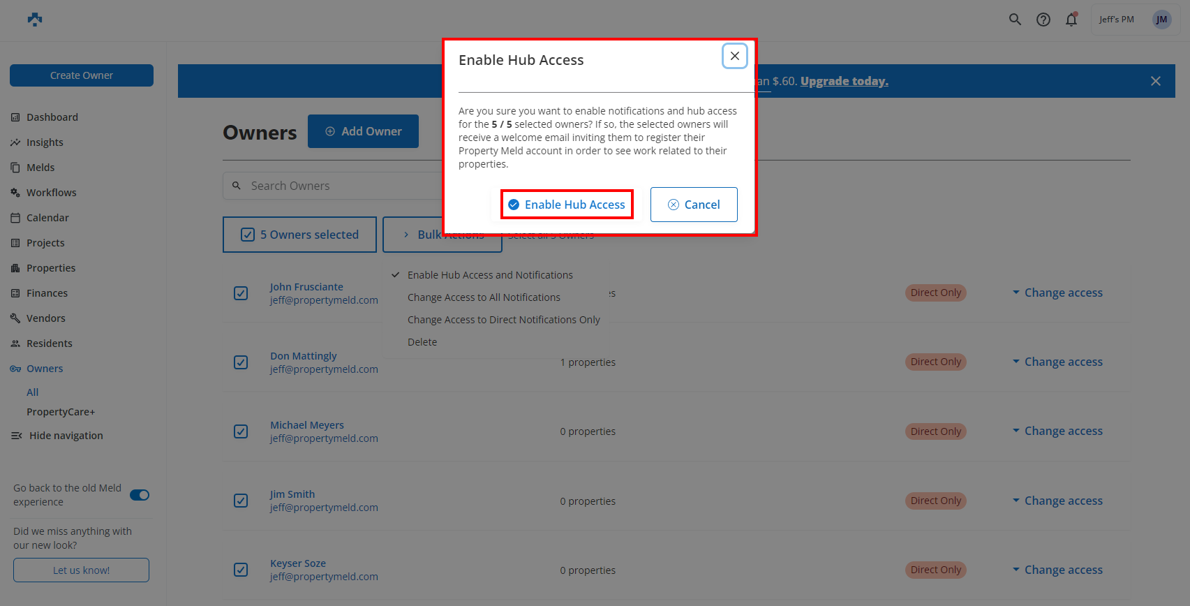 Click the Bulk Actions button and select Enable Hub Access and Notifications from the dropdown.