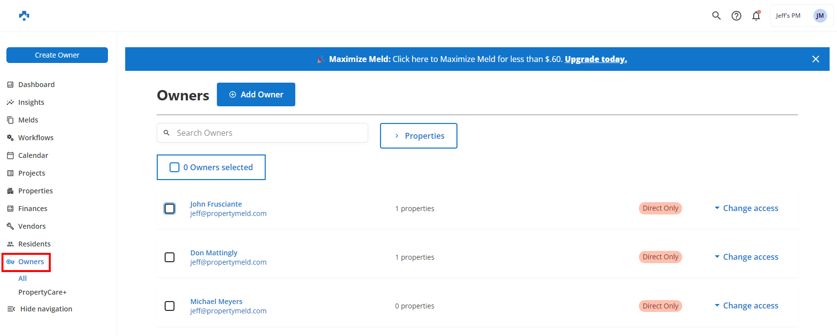 Click on the Owners and then click on the owner that you wish to cancel or resend the invite for.