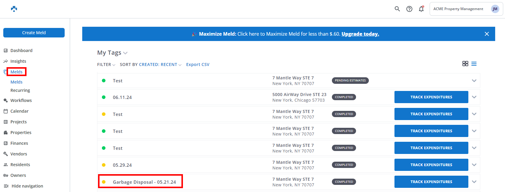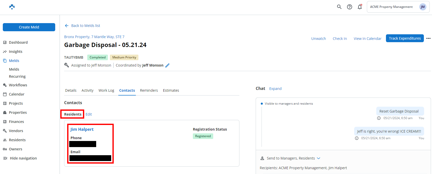 Property Managers can use Property Meld to quickly and easily locate a Residents contact information: