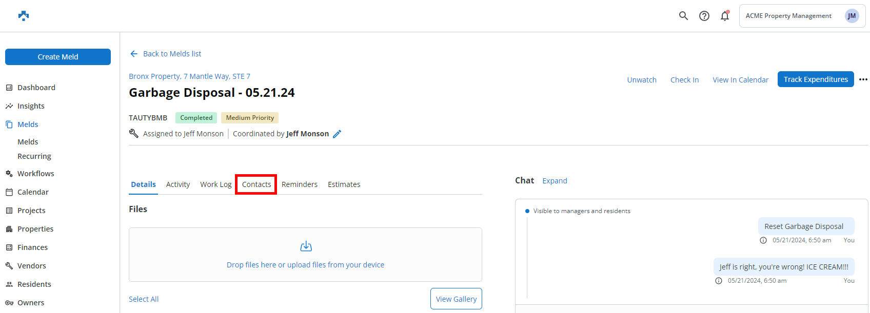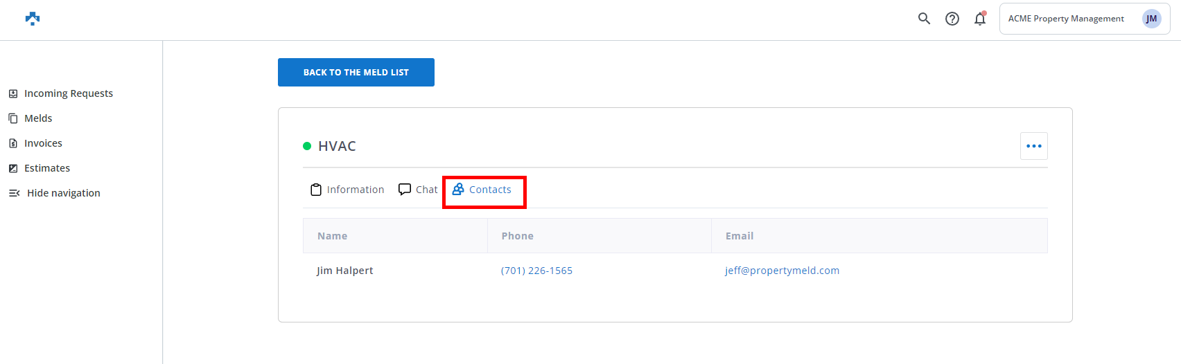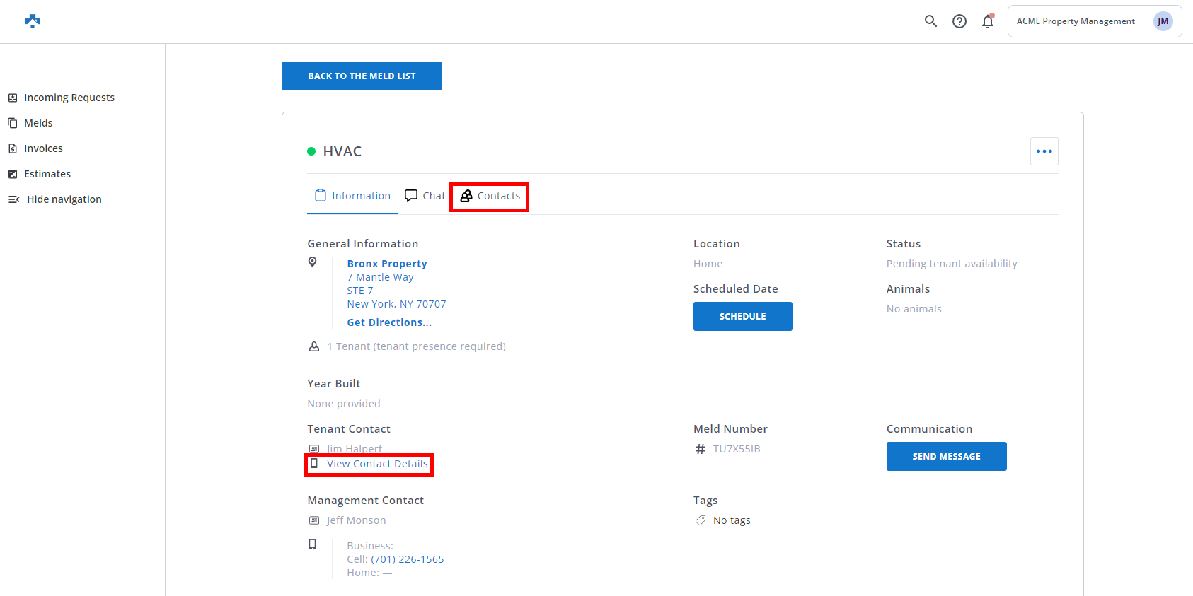 Vendors can also use Property Meld quickly and easily to locate a Residents contact information: