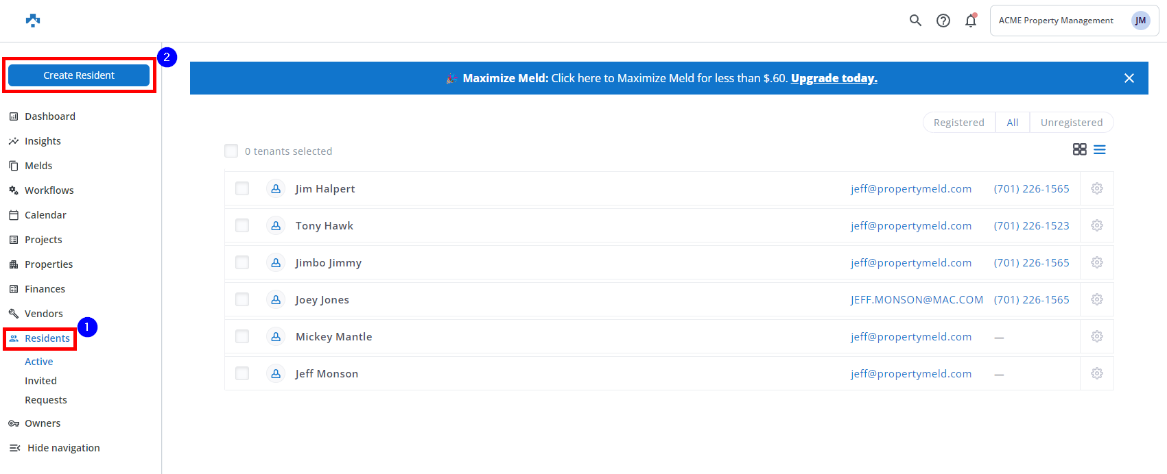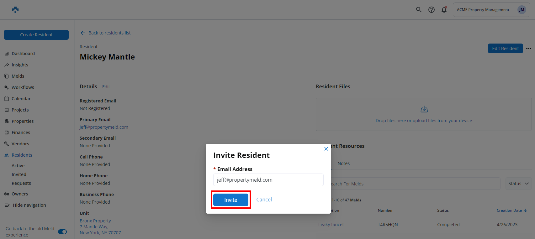 NOTE: The Resident will receive an email with instructions to complete the registration process by entering a password. Emails will periodically be sent until the Resident accepts the invite.