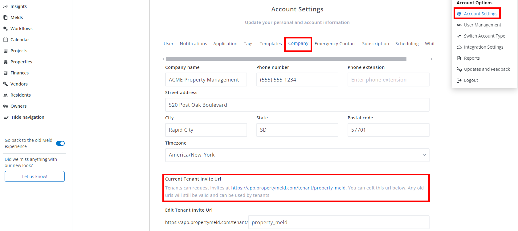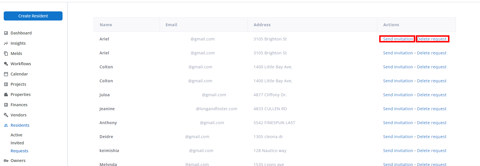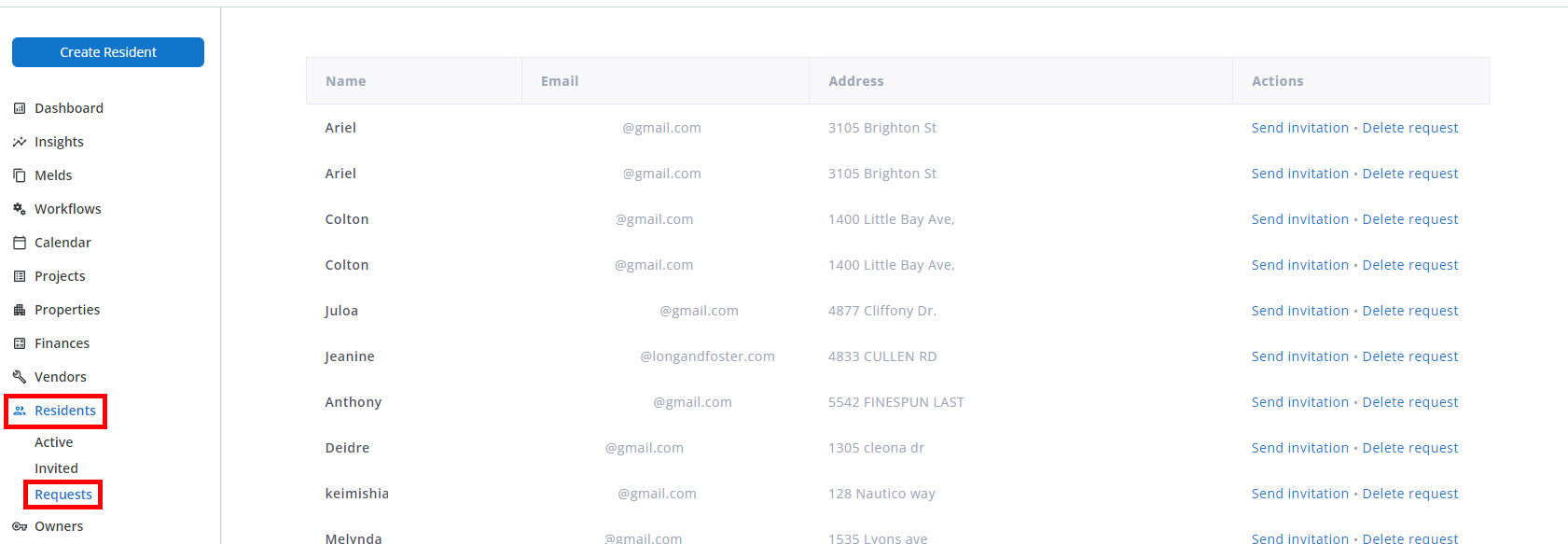 Using the Resident Invite URL configured in Application Settings (see screenshot below), a Resident can submit a request to join Property Meld associated with the correct account. This article will provide steps that a Resident can follow to Request an invite. More importantly, the article will provide steps for managing any Resident Invite Requests.