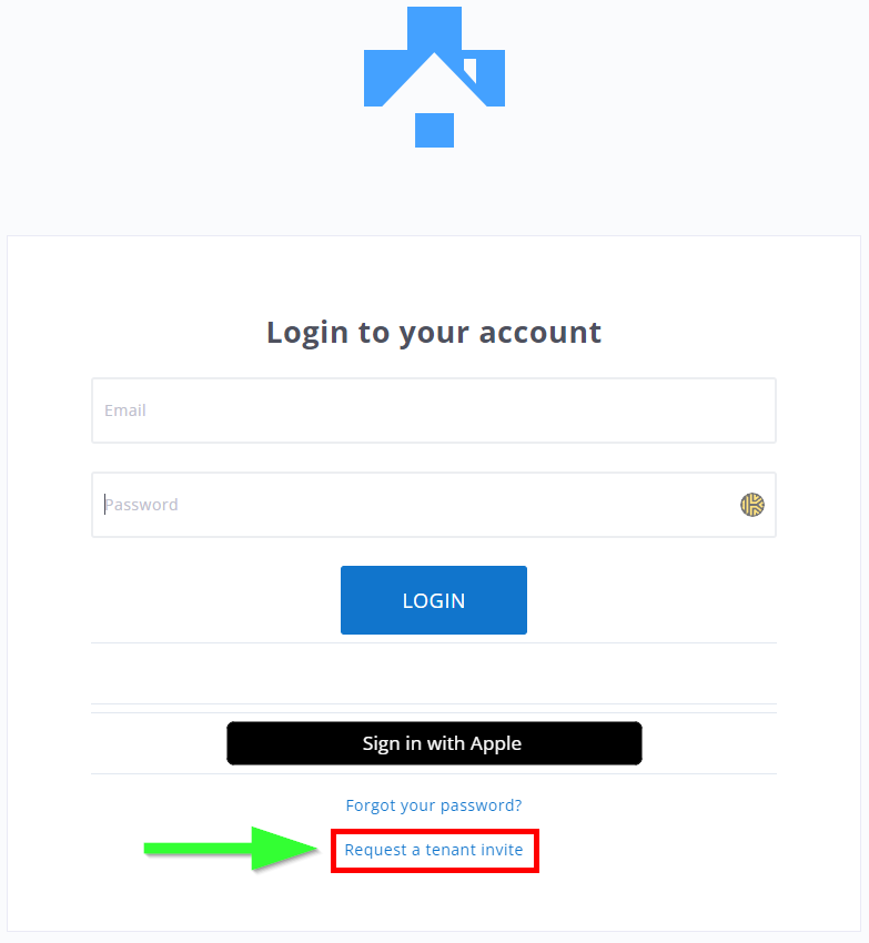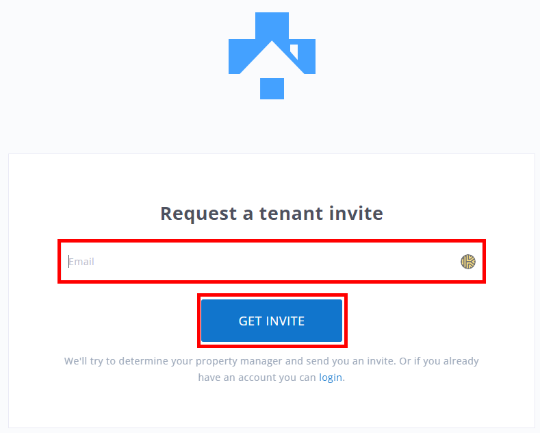 To request an invite, Resident needs to fill enter their email address and click GET INVITE.