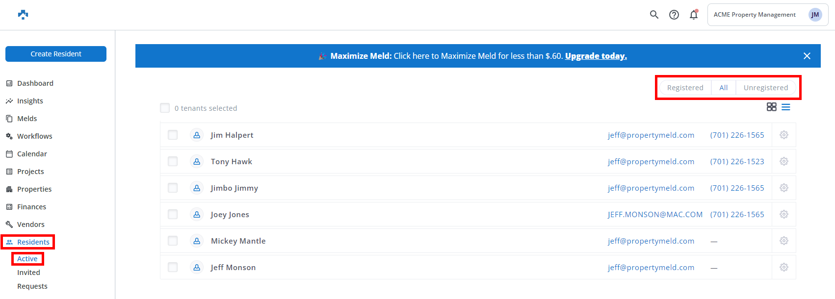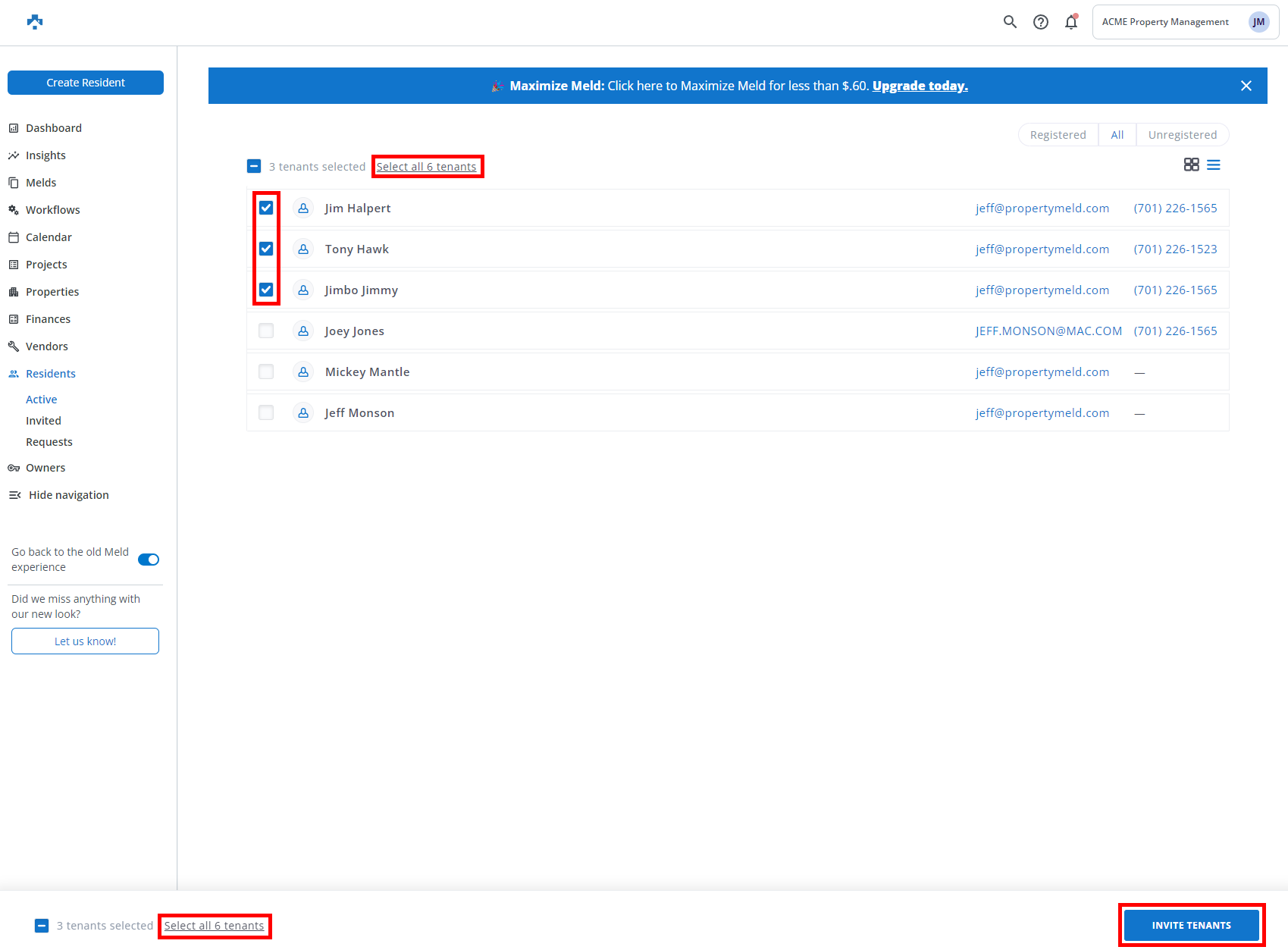 Use the following steps to invite multiple Residents all at once. This probably means you are on your way to starting Property Meld. Congratulations and get ready to start Melding!