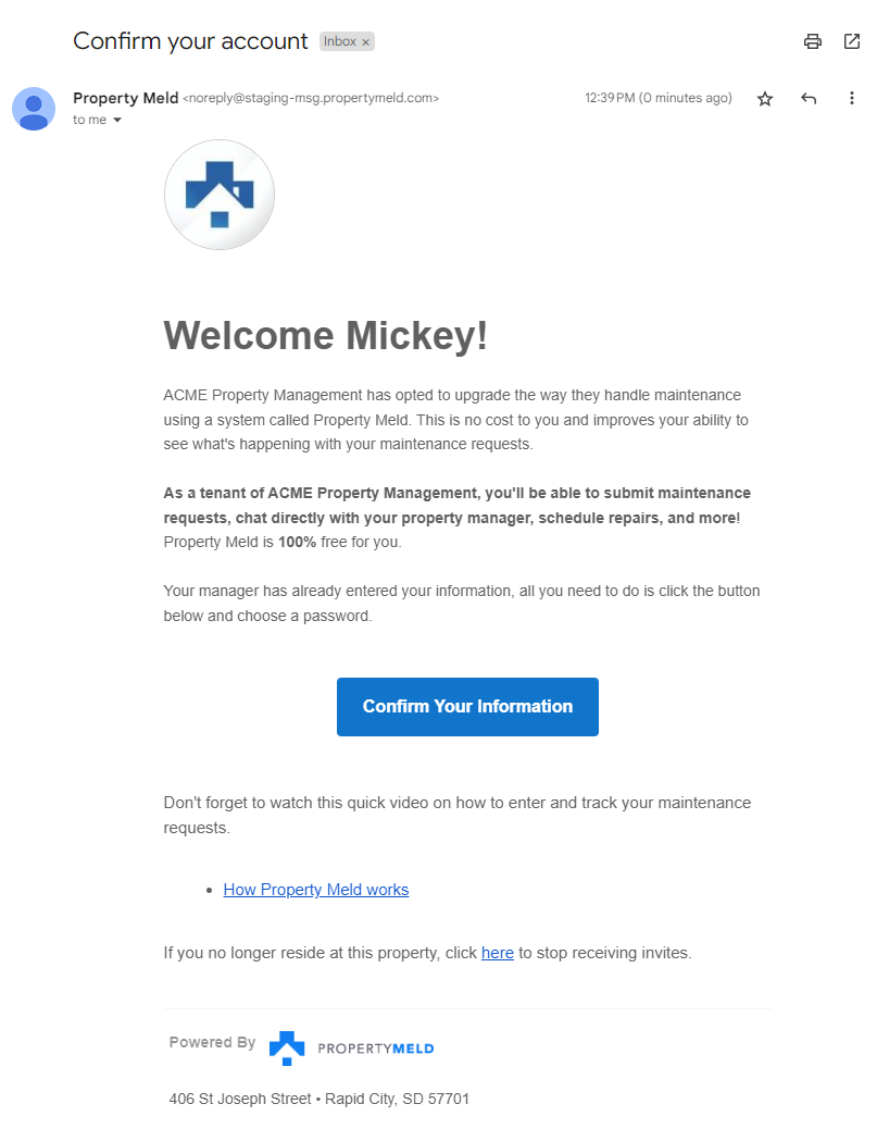 - Your residents will then receive and email that looks like the below example: