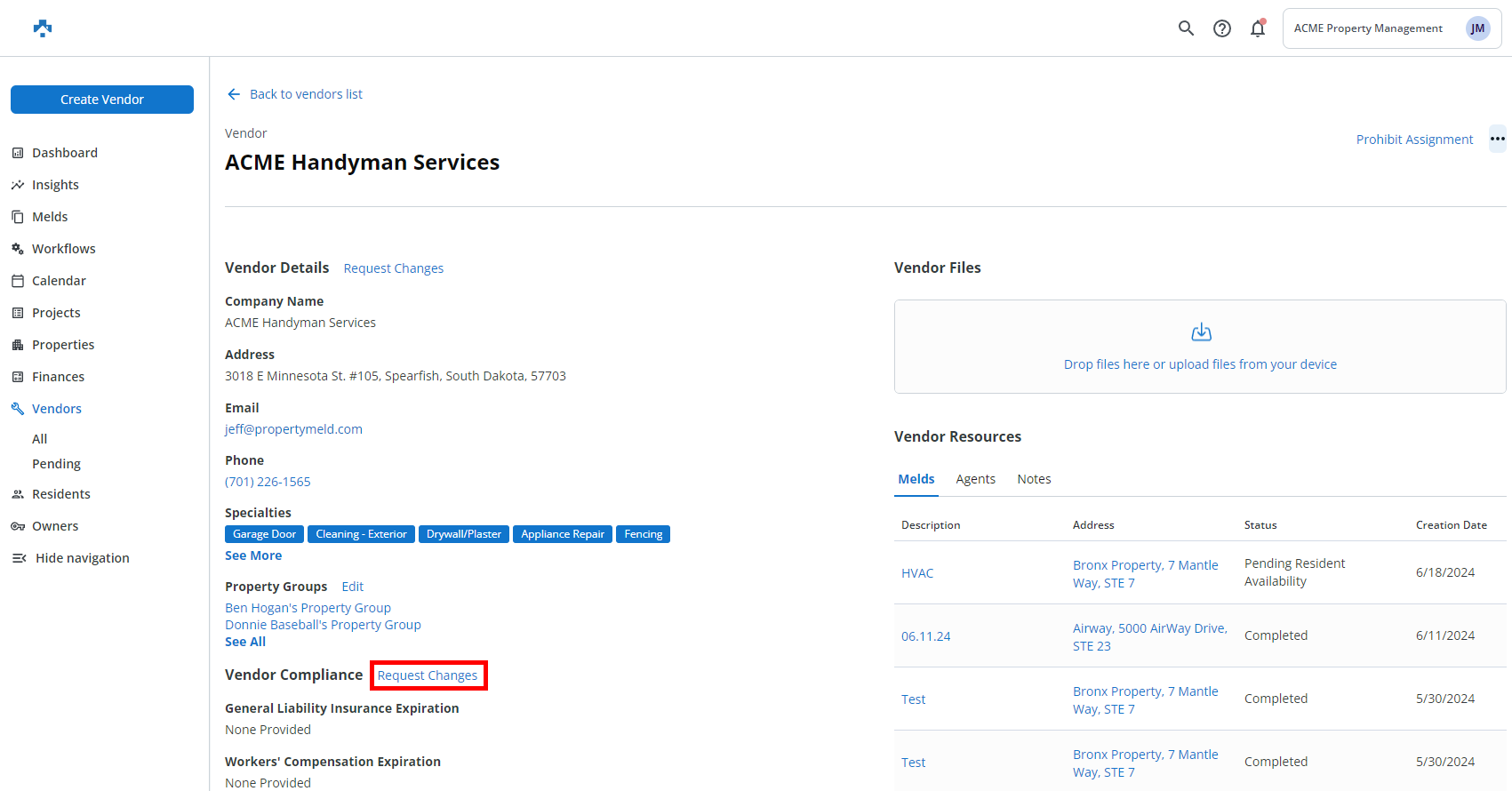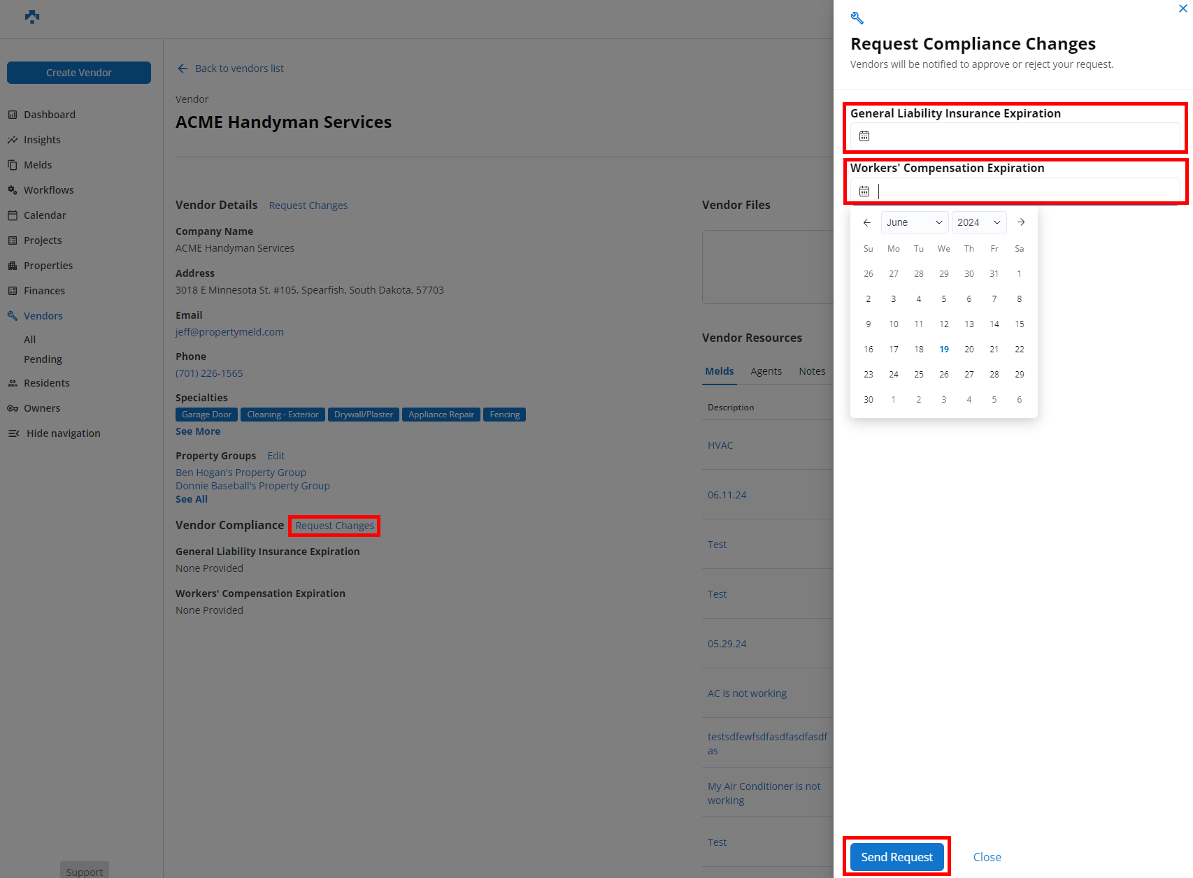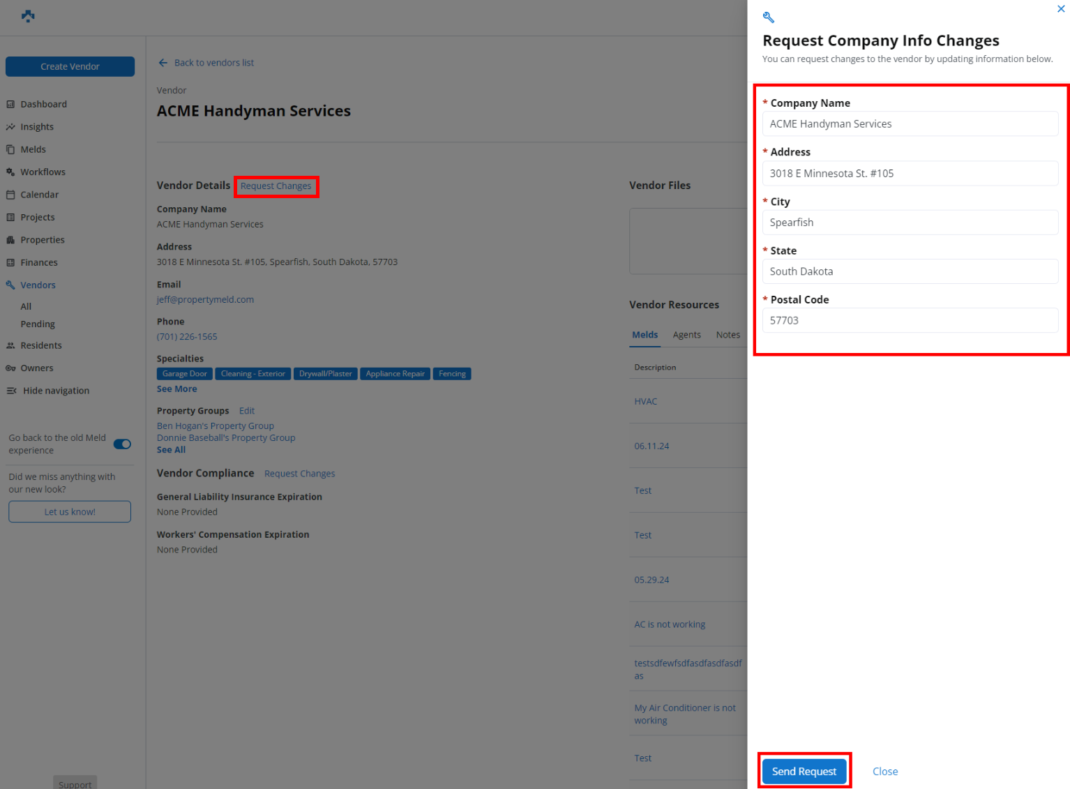 Certain information on a Vendor's profile is sometimes entered incorrectly, which can be troublesome for Property Managers. Now, Property Managers are able to submit a request to a Vendor in order to make changes to their Company profile.