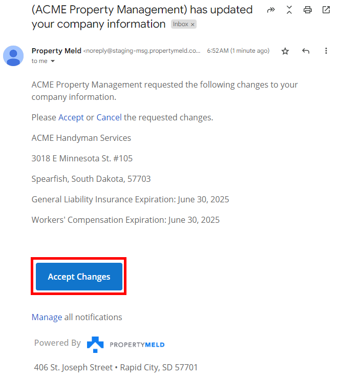 Property Managers are able to submit a formal request to a Vendor to change the following information: