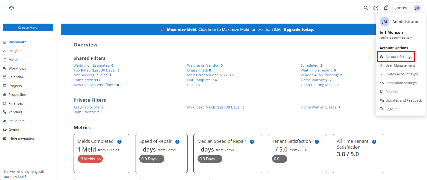 Click company name in upper-right corner, and then click Account Settings.